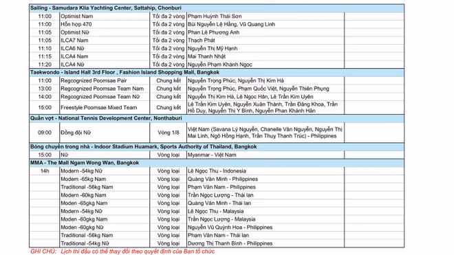 Tất nhiên, ở môn Taekwondo, các vận động viên Việt Nam chắc chắn sẽ phải cạnh tranh quyết liệt với các đối thủ đến từ nước chủ nhà Thái Lan.