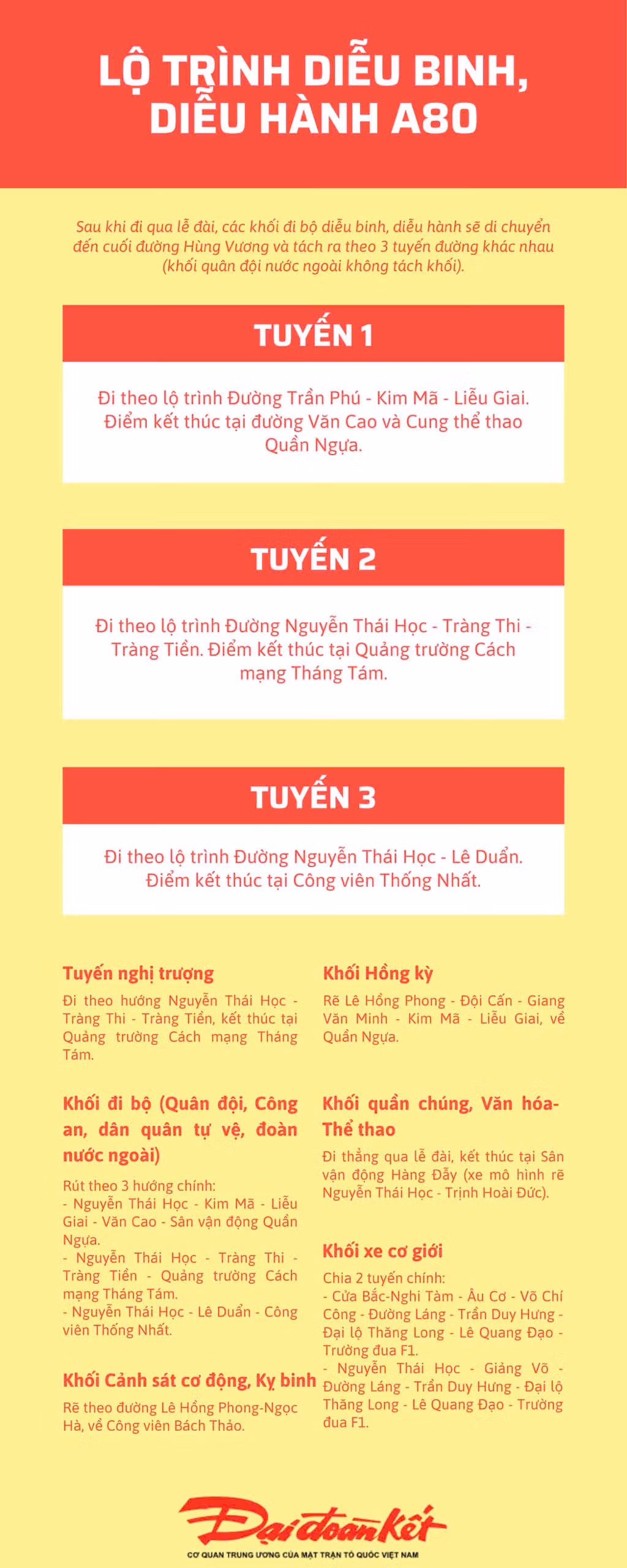 Lộ trình diễu binh, diễu hành sáng ngày 2/9 Thứ Hai 01/09/2025 11:09 (GMT+7) Sau khi đi qua lễ đài, các khối diễu binh, diễu hành sẽ di chuyển theo 3 tuyến đi các cung đường khác nhau… Phí Vân
