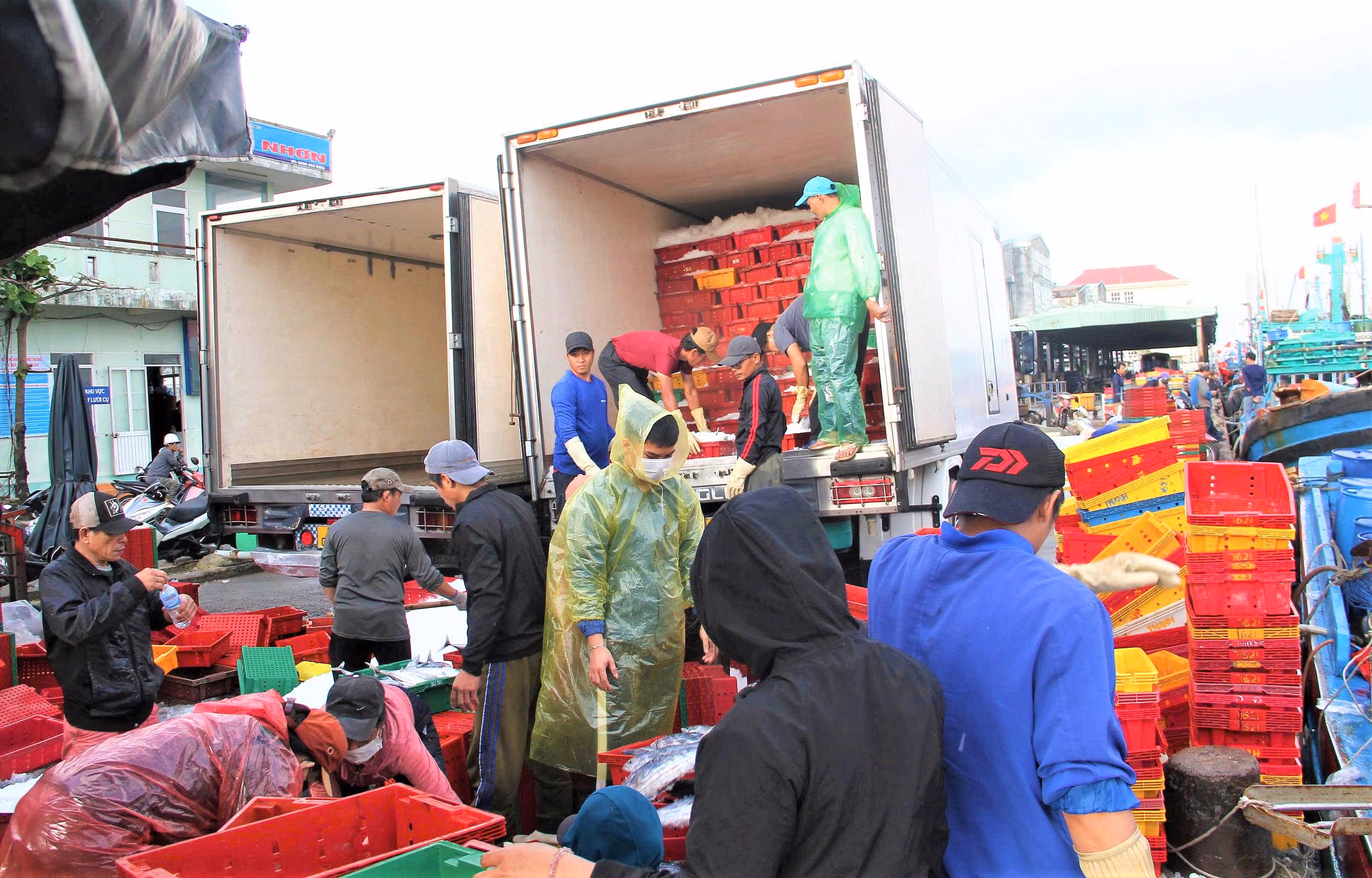 Cá ngừ sọc dưa, cá hố, cá trích, cá thu, cá cơm… vừa đưa lên cầu cảng, nhanh chóng được tiểu thương vây quanh hỏi mua, phân loại, cân đếm. Nơi đây, tiếng chào hỏi, trả giá mua bán, tiếng hối hả gọi xe, gọi người vận chuyển hàng hóa đã tạo nên không khí sôi động, rộn ràng. Các ngư dân vô cùng phấn khởi, khi hải sản đánh bắt lần này chỉ trong thời gian ngắn đã được tiêu thụ hết với mức giá khá cao.