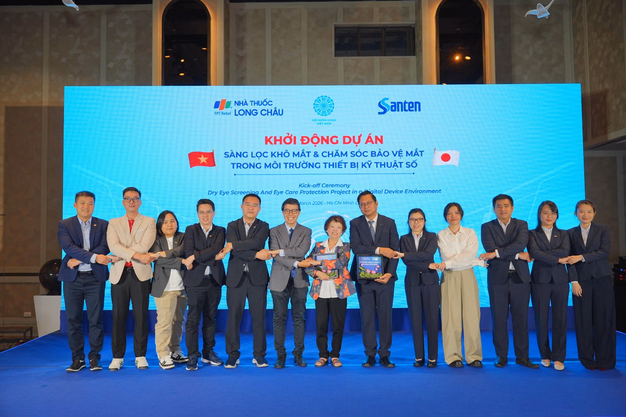 Trong bối cảnh khô mắt trở thành vấn đề sức khỏe cộng đồng đáng quan tâm, ngày 6/3, Hệ thống nhà thuốc và trung tâm tiêm chủng Long Châu đã hợp tác cùng Santen - thương hiệu dược phẩm nhãn khoa hàng đầu Nhật Bản khởi động dự án “Sàng lọc khô mắt; Chăm sóc bảo vệ mắt trong môi trường thiết bị kỹ thuật số” quy mô toàn quốc.