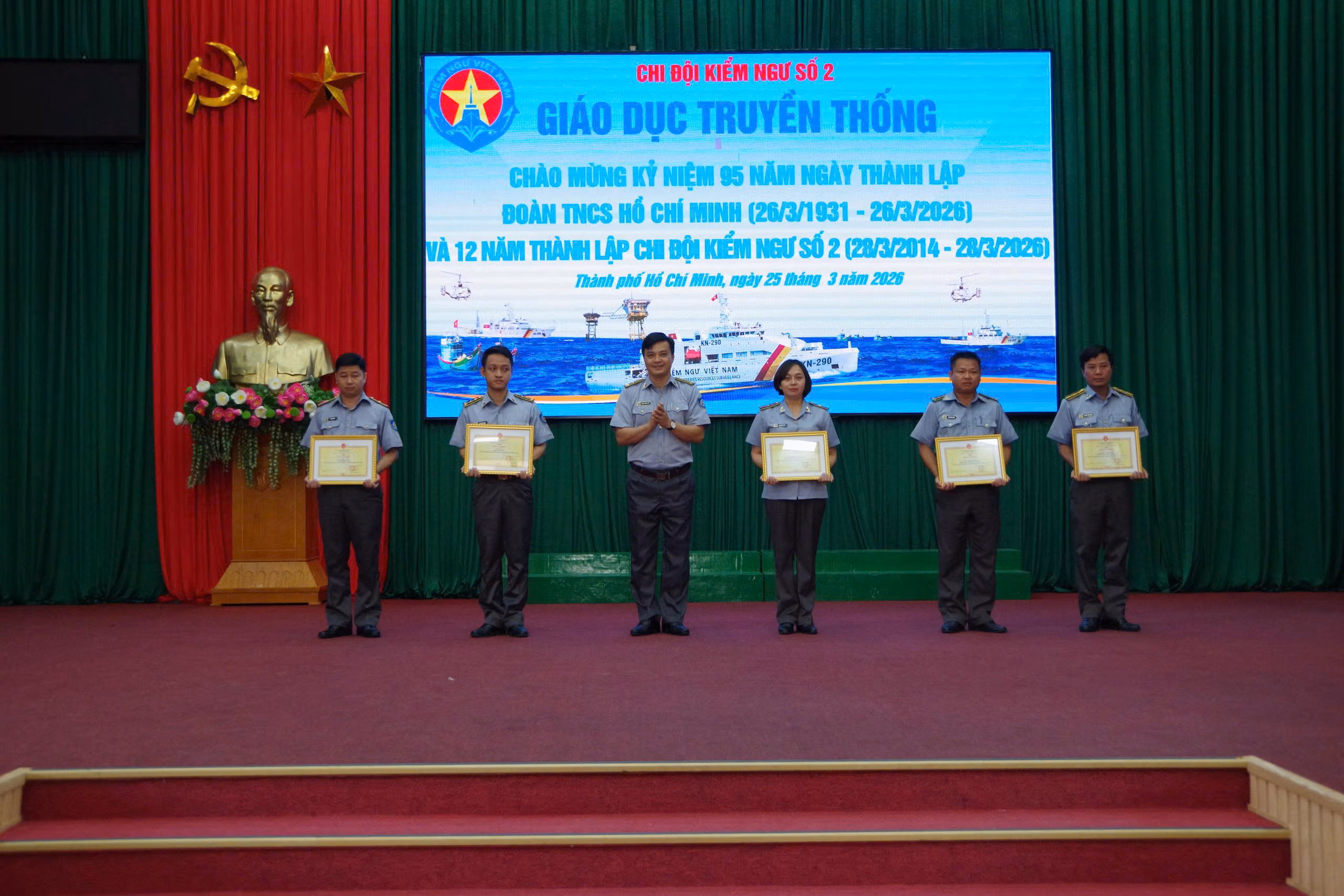 Dịp này, để ghi nhận và động viên kịp thời các điển hình tiên tiến, Chi đội Kiểm ngư số 2 đã tổ chức trao thưởng đoàn viên, thanh niên địa phương vì có thành tích tốt trong phối hợp hoạt động “Tháng Thanh niên” năm 2026; đồng thời trao thưởng cho 5 tập thể và 5 cá nhân có thành tích xuất sắc trong đợt thi học tập và làm theo tư tưởng, đạo đức, phong cách Hồ Chí Minh.