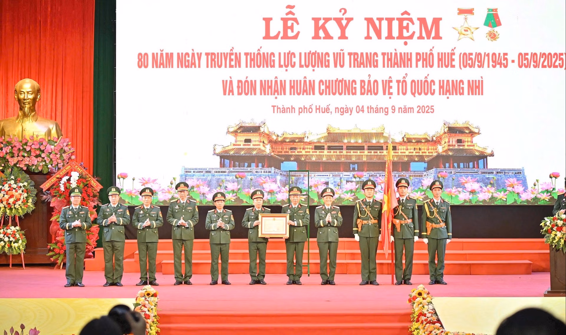 Ngày 4/9, thành phố Huế long trọng tổ chức Lễ Kỷ niệm 80 năm Ngày truyền thống lực lượng vũ trang (LLVT) thành phố Huế (5/9/1945 - 5/9/2025) và đón nhận Huân chương Bảo vệ Tổ quốc hạng Nhì.