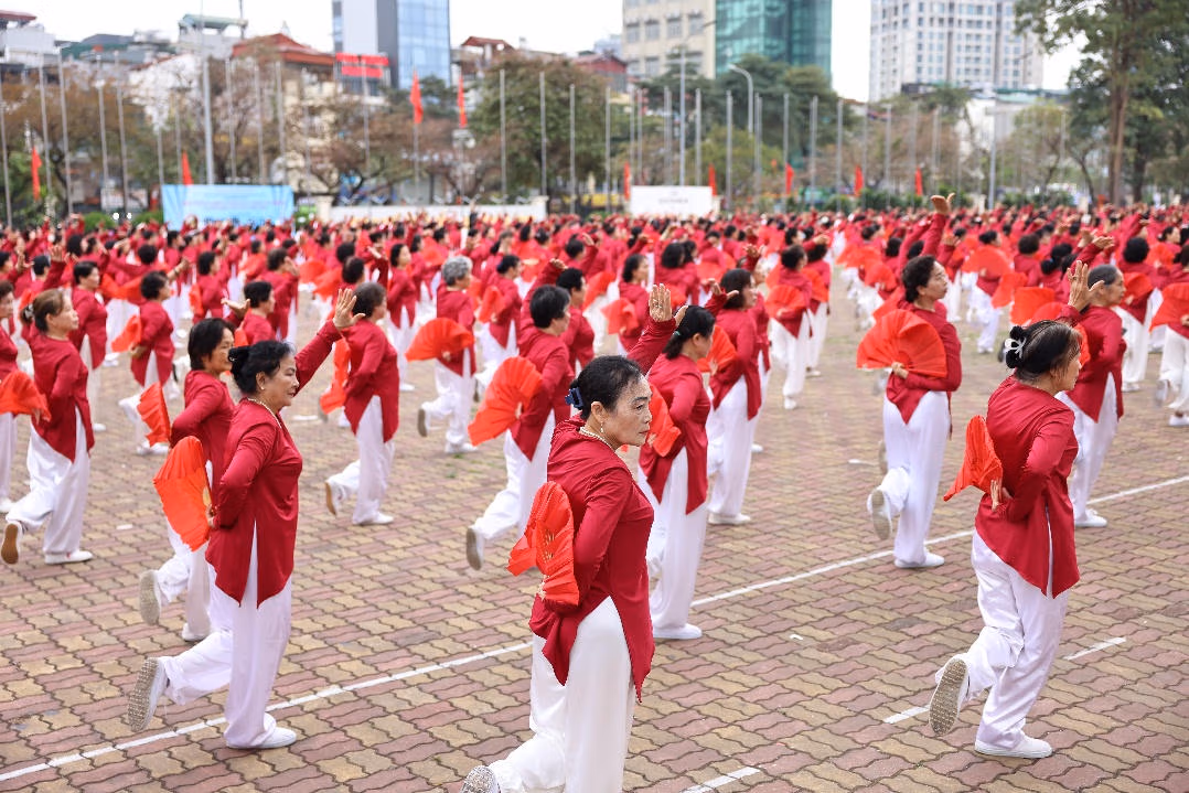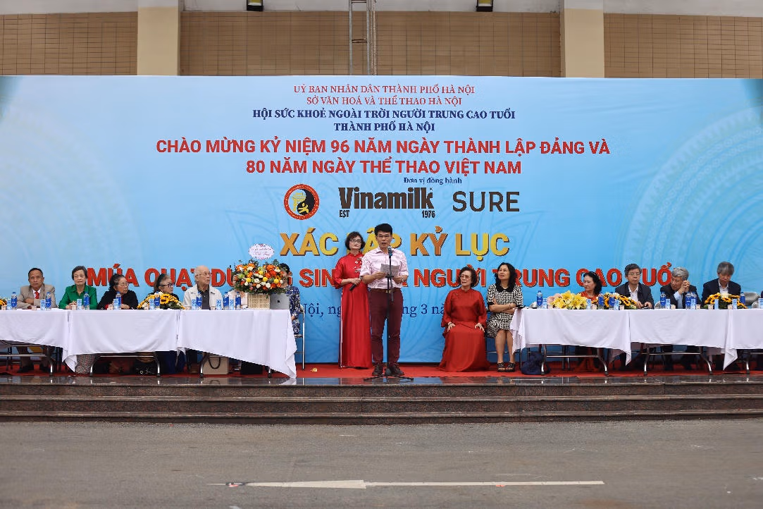 Một kỷ lục Việt Nam mới vừa được xác lập tại Hà Nội, khi gần 3.000 người cao tuổi cùng tham gia đồng diễn múa quạt dưỡng sinh. Chương trình do Hội Sức khỏe Ngoài trời (Hội SKNT) người trung cao tuổi Hà Nội tổ chức, với sự đồng hành của Vinamilk và nhãn hàng Vinamilk Sure, hướng tới kỷ niệm 80 năm Ngày Thể thao Việt Nam và lan tỏa tinh thần chăm sóc sức khỏe chủ động ở tuổi vàng.