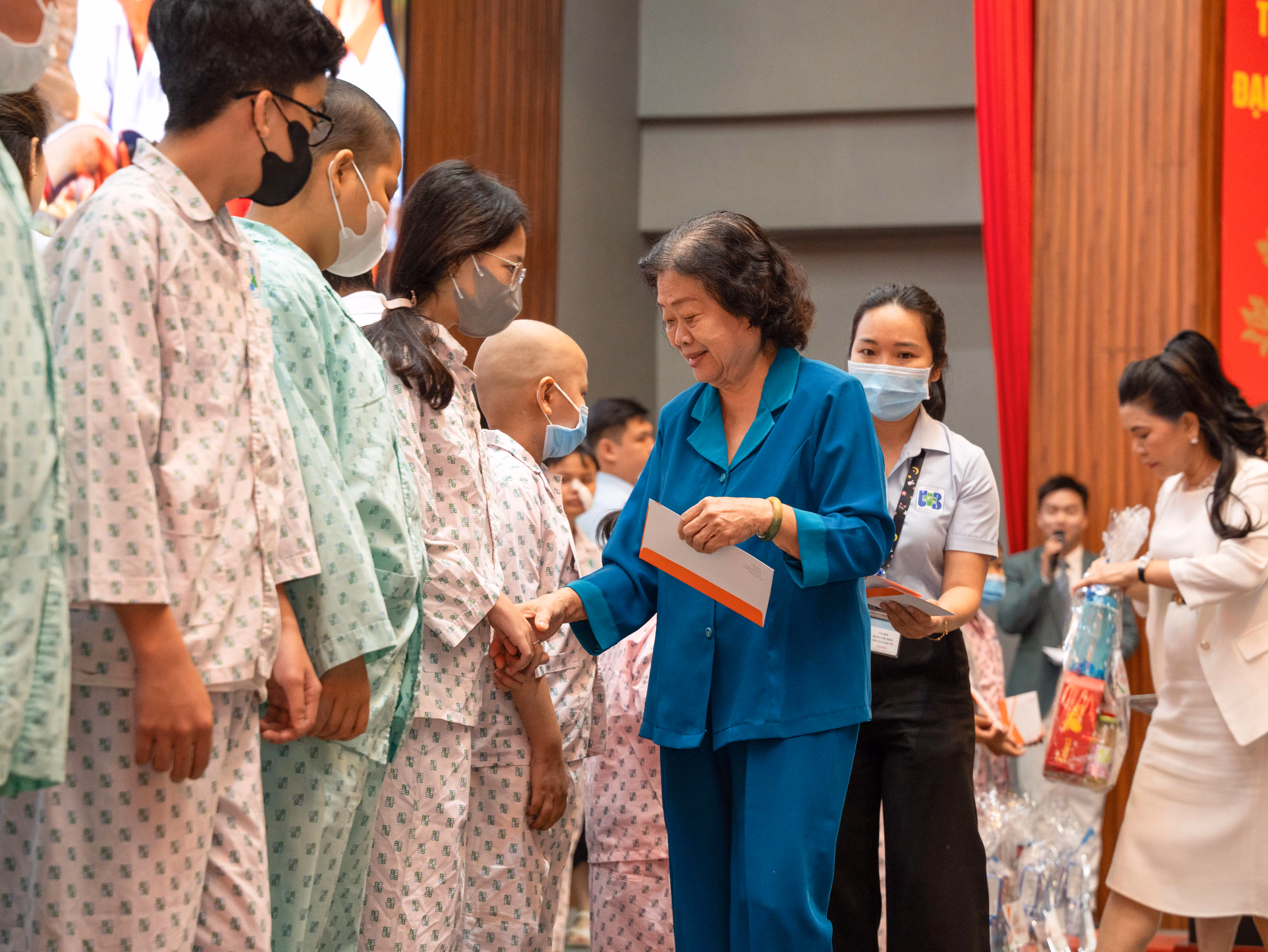 "Những phần quà không lớn về vật chất nhưng mang ý nghĩa tinh thần sâu sắc, góp phần tiếp thêm nghị lực cho các em nhỏ và gia đình", nguyên Phó Chủ tịch nước Trương Mỹ Hoa nói.