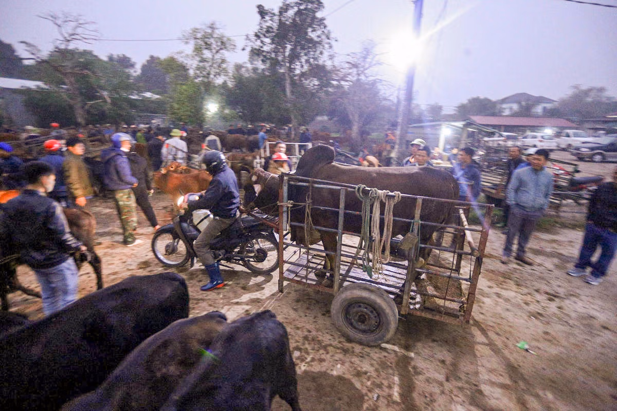 Tờ mờ sáng, khi sương còn giăng trên những triền đồi, từng tốp người lặng lẽ dắt trâu bò về bãi đất rộng cạnh đường liên xã. Không loa gọi, không biển hiệu, nhưng ai cũng nhớ ngày họp chợ. Những sợi dây buộc mũi nối dài thành hàng, tiếng móng gõ xuống nền đất ẩm tạo thành âm thanh quen thuộc của một phiên giao dịch.