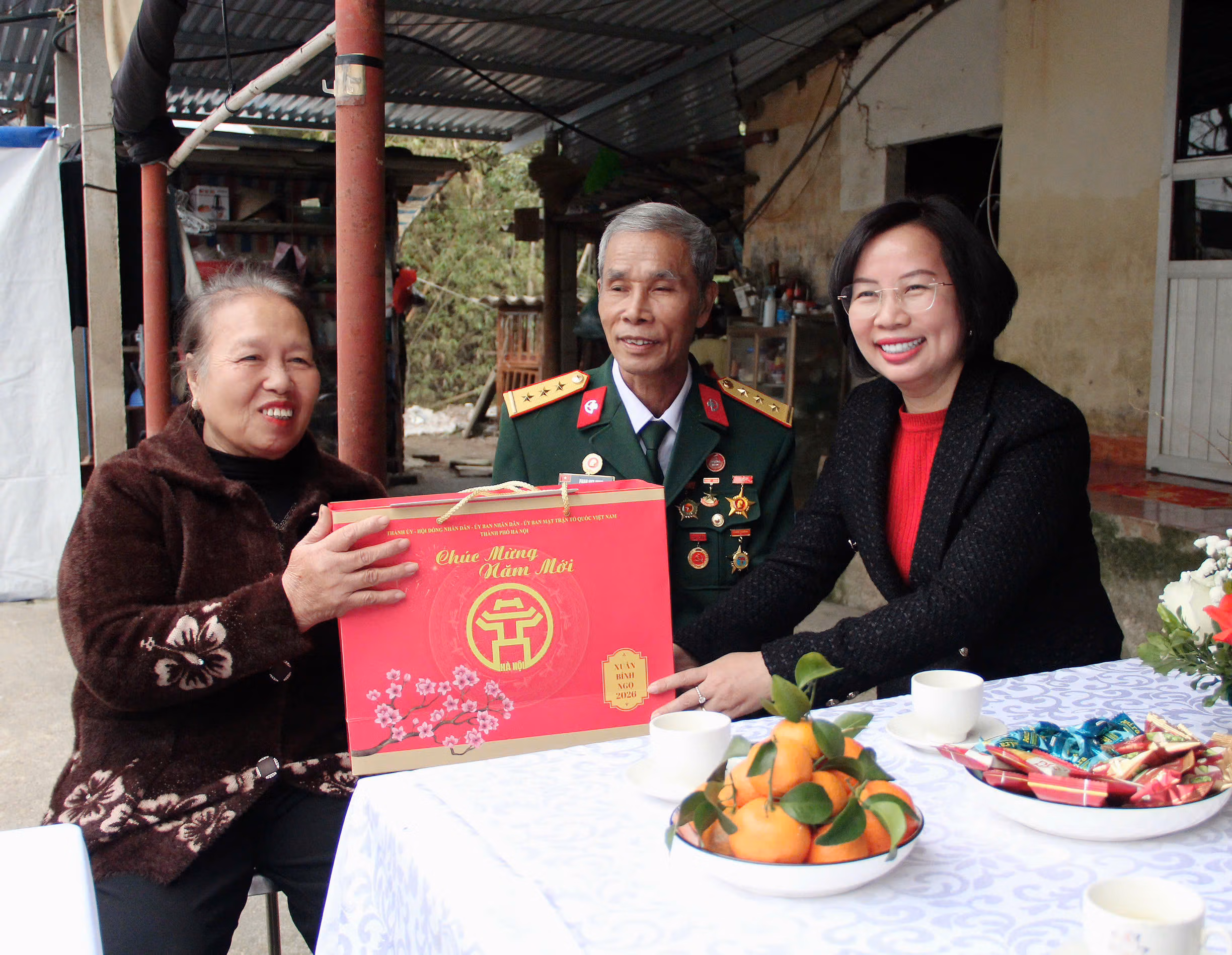 Trong không khí ấm cúng, nghĩa tình, tại các gia đình đến thăm, Chủ tịch Ủy ban MTTQ Việt Nam TP Hà Nội Bùi Huyền Mai ân cần thăm hỏi sức khỏe và đời sống, bày tỏ lòng tri ân sâu sắc trước những cống hiến, hy sinh của các thương binh, người có công với cách mạng; đồng thời chúc các gia đình đón Tết Nguyên đán Bính Ngọ 2026 vui tươi, đầm ấm, an khang...