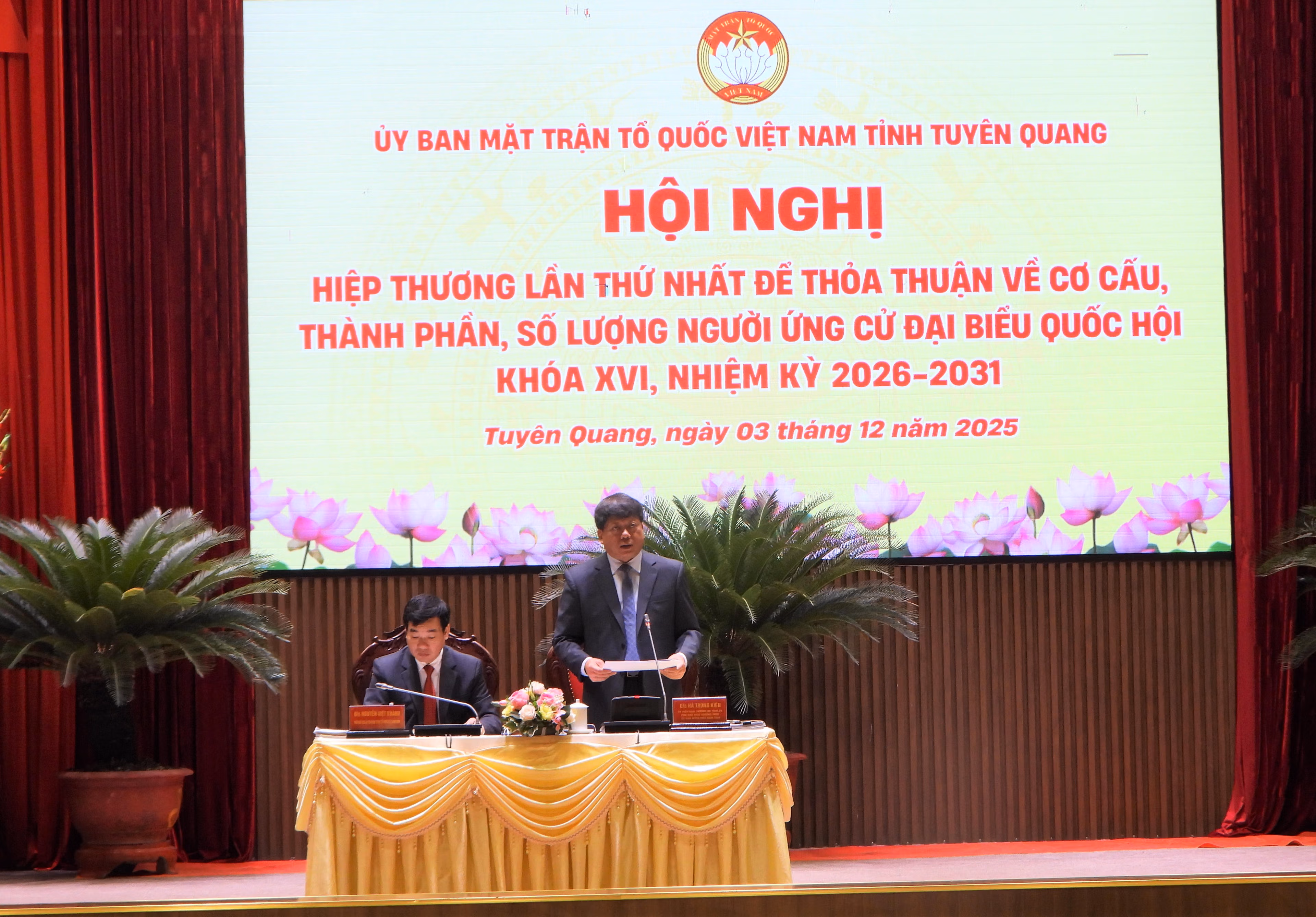 Ngày 3/12, Ủy ban MTTQ Việt Nam tỉnh Tuyên Quang tổ chức Hội nghị Hiệp thương lần thứ nhất thỏa thuận về cơ cấu, thành phần, số lượng người ứng cử đại biểu Quốc hội (ĐBQH) khóa XVI và Hội đồng nhân dân (HĐND) tỉnh Tuyên Quang khóa XX, nhiệm kỳ 2026 - 2031.