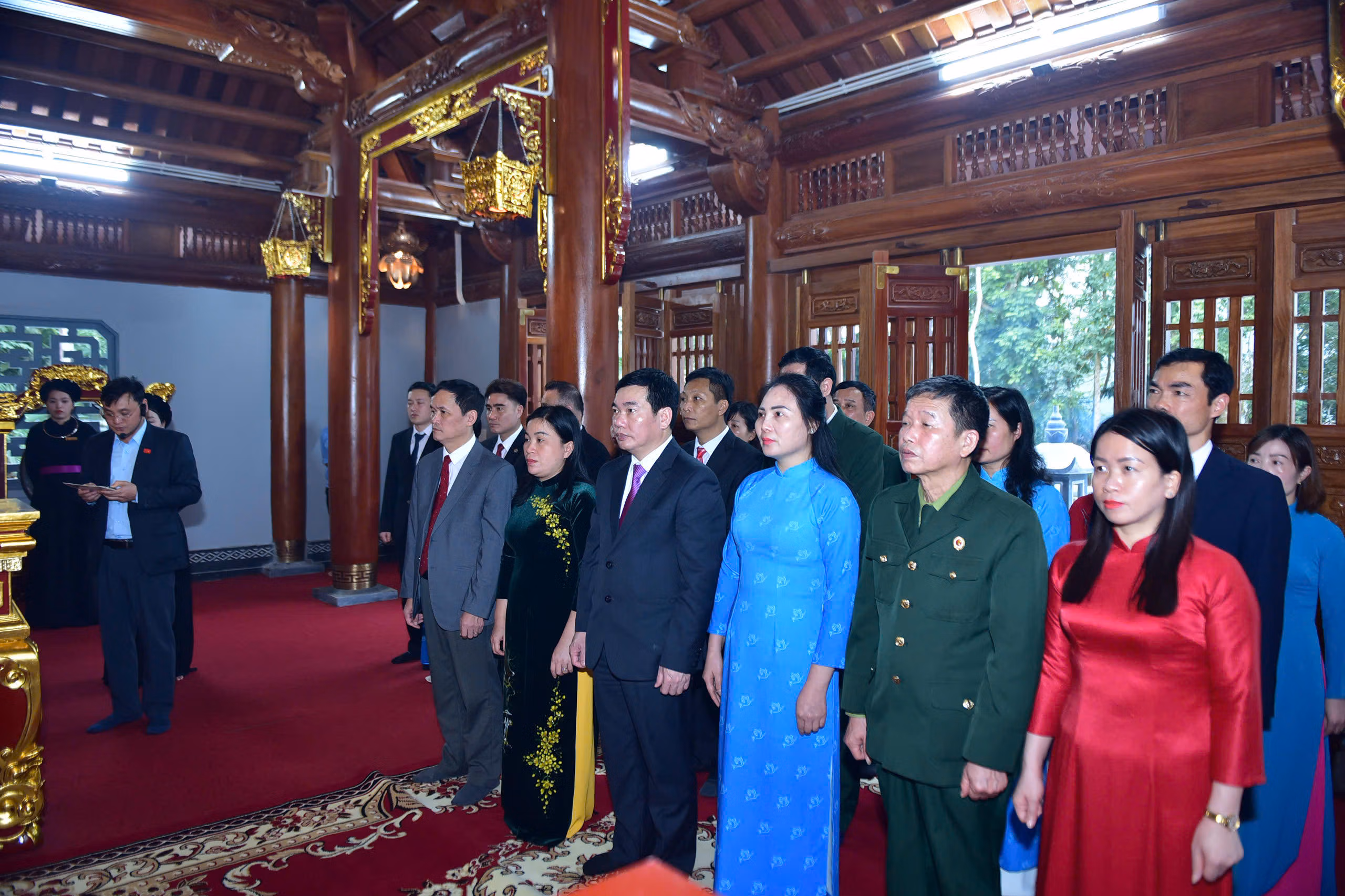Từ Quảng trường Nguyễn Tất Thành, Đoàn đại biểu tiếp tục hành trình về Khu di tích quốc gia đặc biệt Tân Trào - nơi ghi dấu những quyết sách trọng đại của cách mạng Việt Nam. Tại Đình Tân Trào, Lán Nà Nưa, Đền thờ Bác Hồ và Khu tưởng niệm các vị tiền bối cách mạng, từng nén hương được thắp lên với tất cả sự tri ân và niềm xúc động sâu sắc.