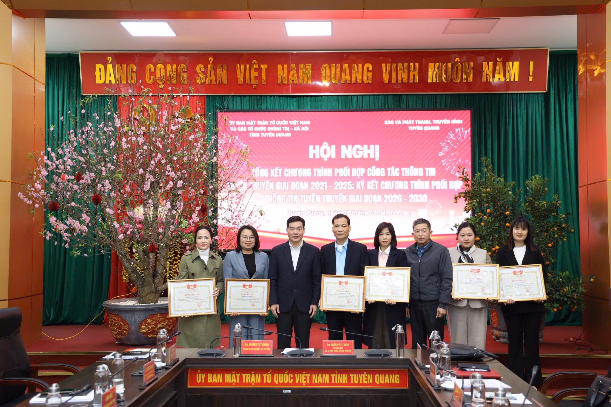 Nhân dịp này, Ủy ban MTTQ Việt Nam tỉnh Tuyên Quang đã trao bằng khen cho 3 tập thể và 9 cá nhân có thành tích trong công tác phối hợp thông tin, tuyên truyền giai đoạn 2021-2025.