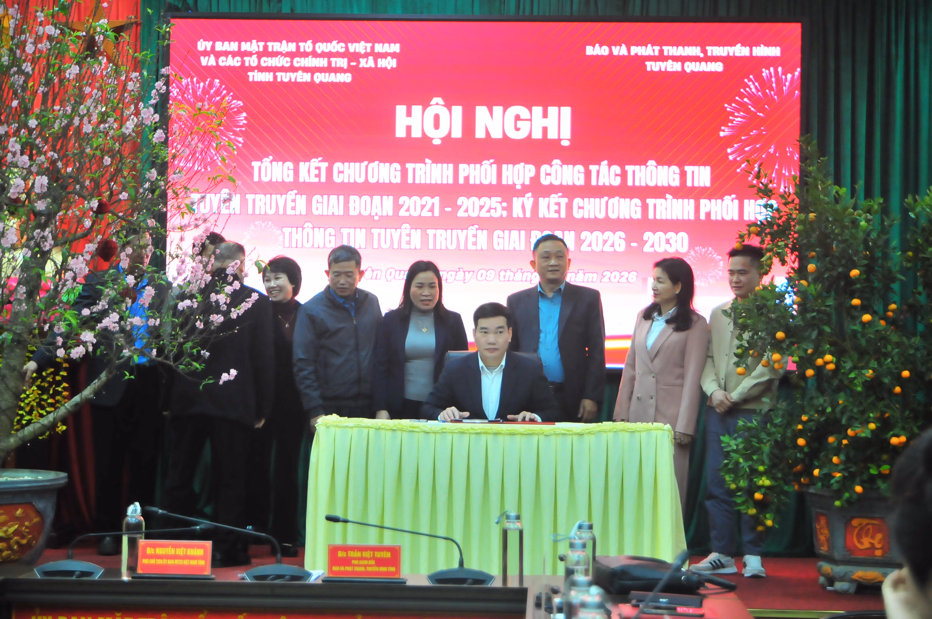 Chiều 9/2, Ủy ban MTTQ Việt Nam tỉnh Tuyên Quang phối hợp với Báo và Phát thanh - Truyền hình tỉnh Tuyên Quang tổ chức Hội nghị tổng kết Chương trình phối hợp công tác thông tin, tuyên truyền giai đoạn 2021 - 2025; đồng thời ký kết Chương trình phối hợp công tác thông tin, tuyên truyền giai đoạn 2026 - 2030.