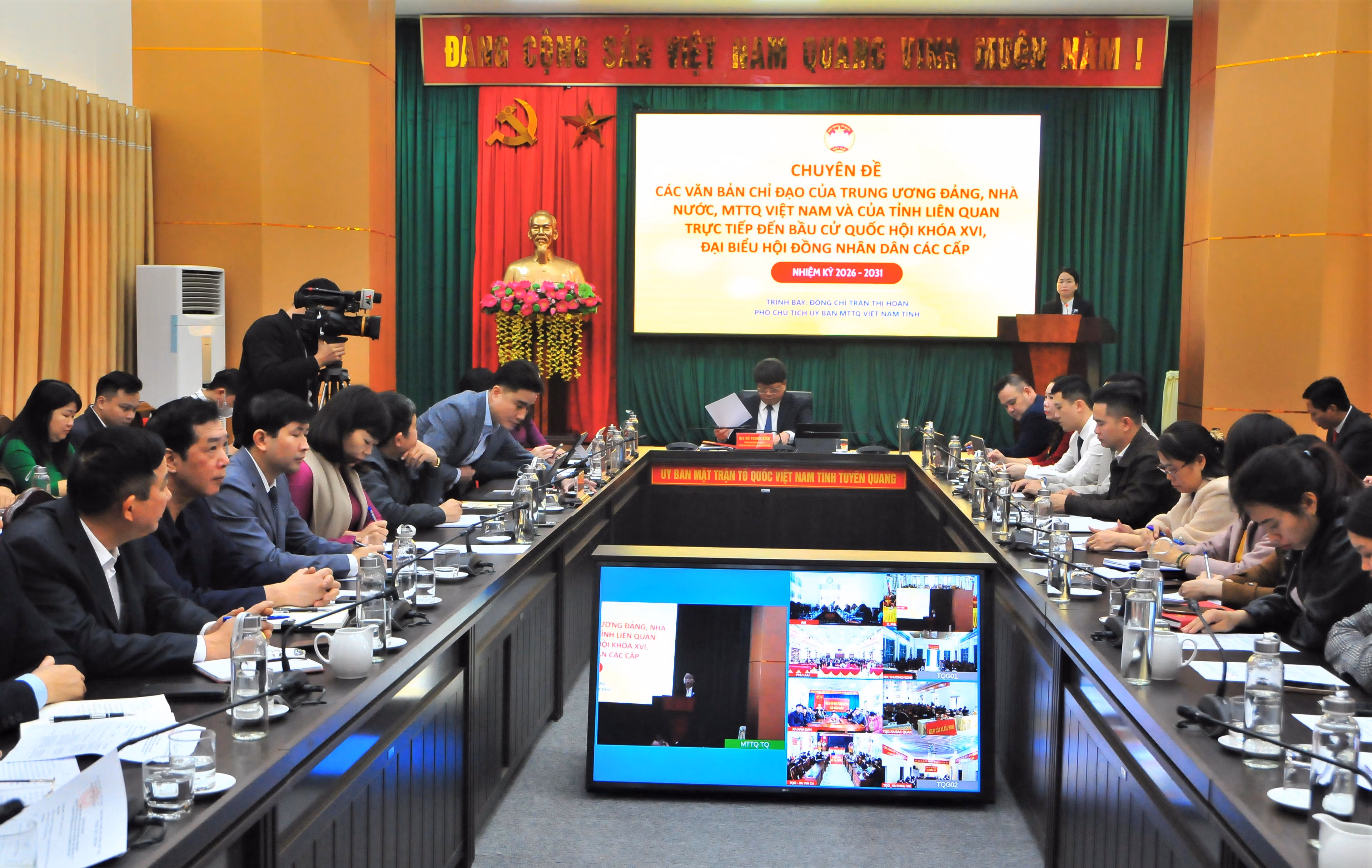 Ngày 1/12, Ban Thường trực Ủy ban MTTQ Việt Nam tỉnh Tuyên Quang tổ chức Hội nghị quán triệt các văn bản chỉ đạo và hướng dẫn công tác Mặt trận tham gia cuộc bầu cử đại biểu Quốc hội khóa XVI và đại biểu Hội đồng nhân dân (HĐND) các cấp nhiệm kỳ 2026 - 2031.