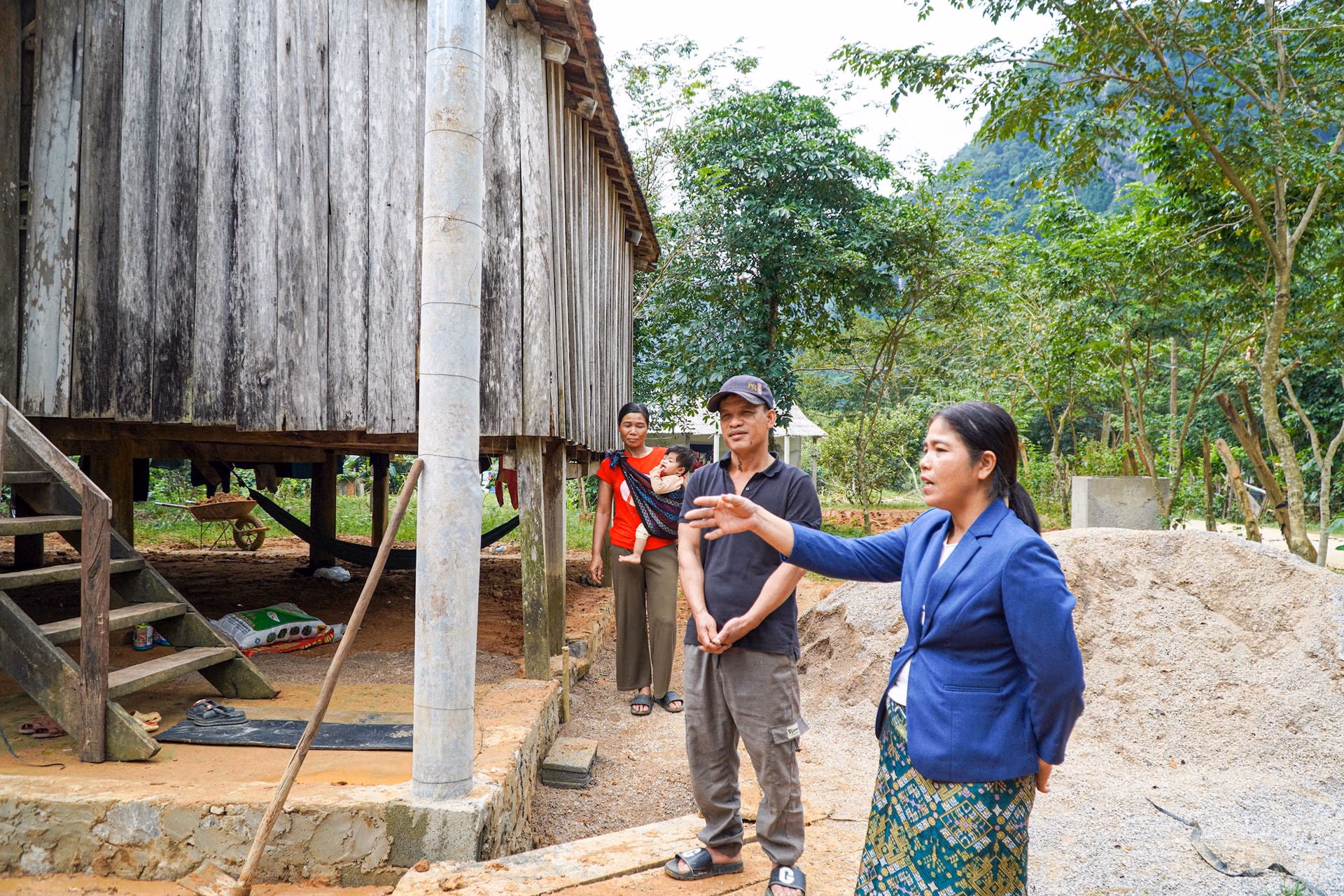 Buổi chiều hanh nắng, bà Hồ Thị Nhanh, Chủ tịch Uỷ ban Mặt trận Tổ quốc Việt Nam xã Ngân Thuỷ (Lệ Thuỷ, Quảng Bình) dẫn chúng tôi đến thăm ngôi nhà mới xây, mái tôn đỏ tươi, tường còn vương mùi vôi vữa của gia đình anh Ngành ở bản Cây Sung. Mười mấy năm sống trong ngôi nhà sàn tạm bợ, sinh hoạt của gia đình anh Hồ Văn Ngành rất khó khăn. Mỗi khi mưa bão đến là cả nhà anh lo lắm nên ước ao có một căn nhà kiên cố, không cần lớn, chỉ cần ấm áp khi mùa mưa lạnh đến. Và rồi, ước mơ ấy của anh Ngành đã thành hiện thực, gia đình được hỗ trợ xoá nhà tạm, nhà dột nát nên mừng lắm.