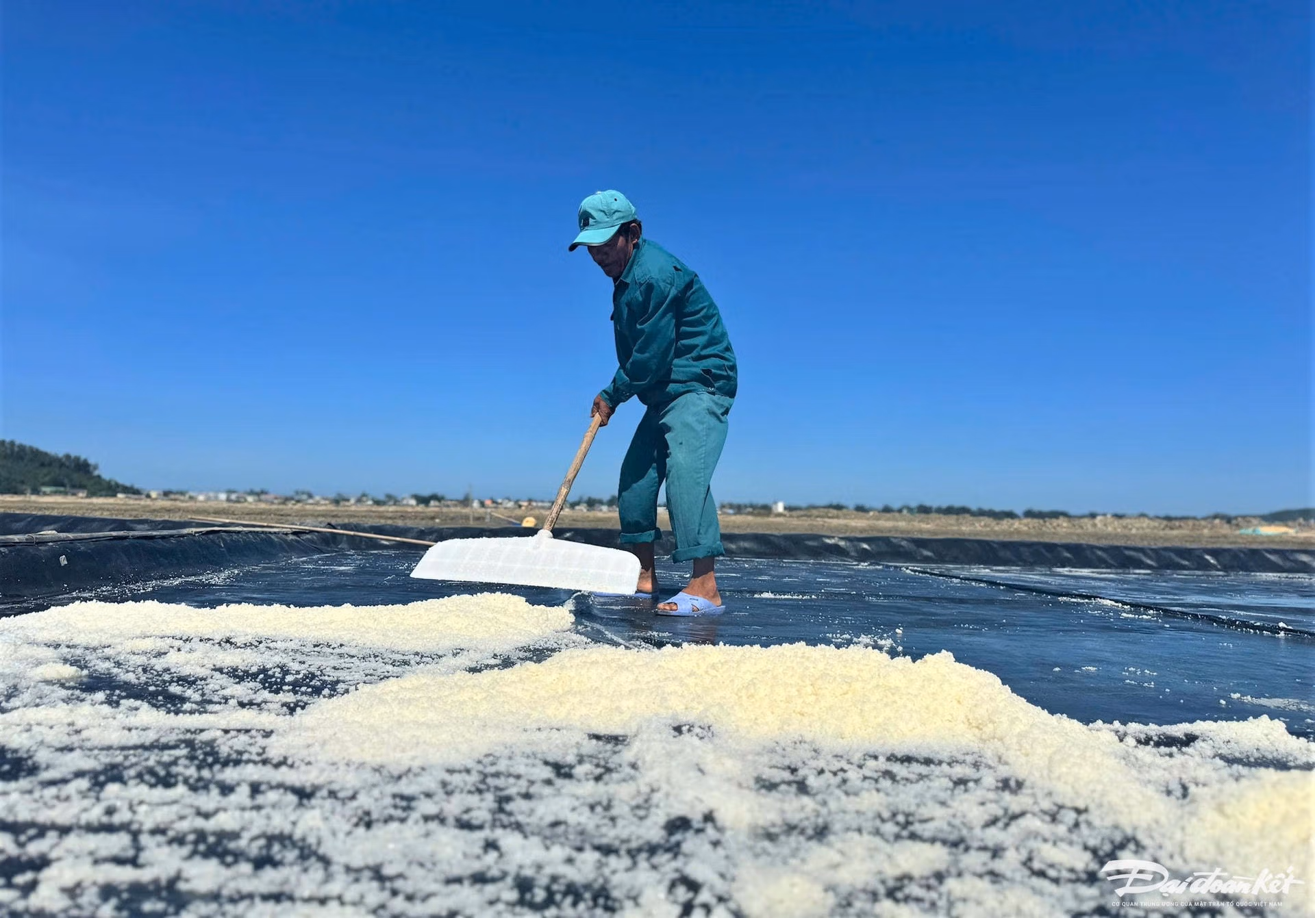 Tâm sự với chúng tôi, ông Nguyễn Phu, là người đã gắn bó với nghề làm muối hơn 20 năm chia sẻ: “Nghề làm muối vất vả, bà con chúng tôi muốn cho ra những hạt muối trắng thì phải chấp nhận cảnh đầu đội nắng, mặt đối diện với hơi nóng của muối, của nước biển... Nói vậy để biết được nghề này nó cực nhọc như thế nào”.