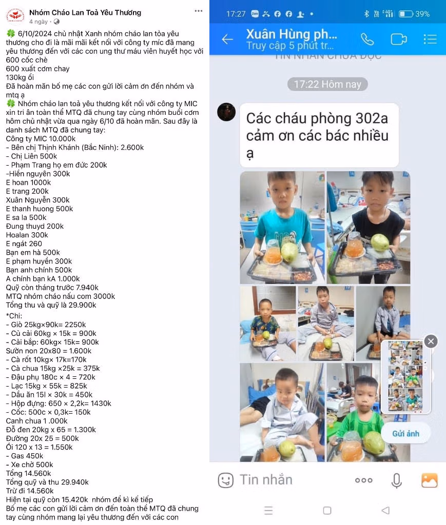 Chủ nhật ngày 6/10 vừa qua, nhóm đã phối hợp cùng MIC Creative - Công ty CP truyền thông và quảng cáo (Công ty MIC), mang đến 600 suất cơm chay, 600 cốc chè đỗ đen và 130kg ổi cho các bệnh nhân. Sự kiện không chỉ mang lại niềm vui, mà còn làm ấm lòng những gia đình đang đối diện với khó khăn trong hành trình chạy chữa cho con em họ. Song song với đó, Nhóm Cháo Lan Tỏa Yêu Thương luôn công khai minh bạch về mọi khoản thu - chi từ sự đóng góp của Nhà Hảo Tâm, đảm bảo tính rõ ràng, uy tín và tạo dựng niềm tin vững chắc trong cộng đồng.