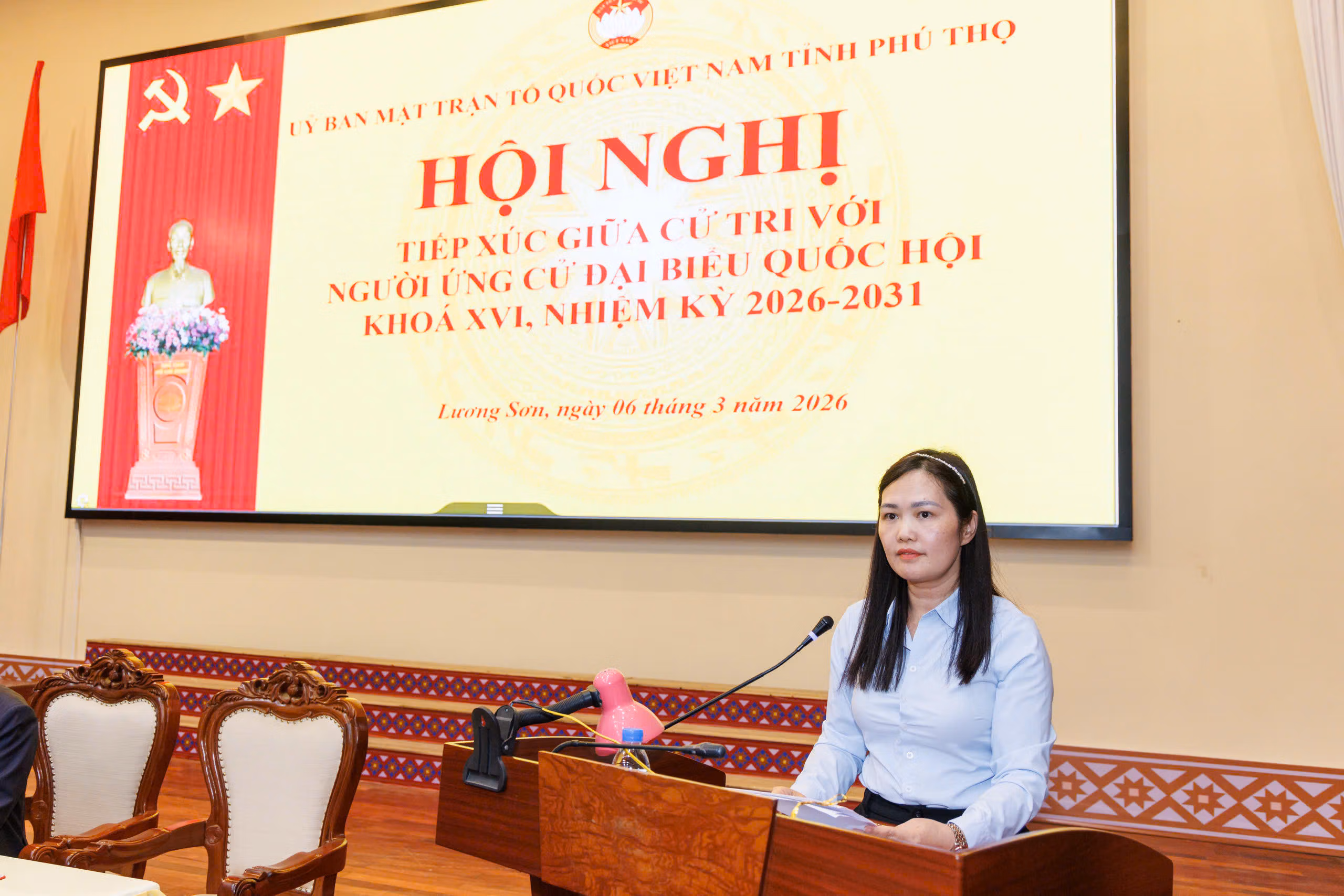 Tiếp tục chương trình tiếp xúc cử tri, chiều 6/3, Ủy viên Bộ Chính trị, Bí thư Trung ương Đảng, Bí thư Đảng ủy MTTQ, các đoàn thể Trung ương, Chủ tịch UBTƯ MTTQ Việt Nam Bùi Thị Minh Hoài cùng các ứng cử viên ứng cử Đại biểu Quốc hội khóa XVI, nhiệm kỳ 2026 – 2031, đơn vị bầu cử số 05 tiếp xúc cử tri trực tiếp và trực tuyến tại xã Lương Sơn, tỉnh Phú Thọ.