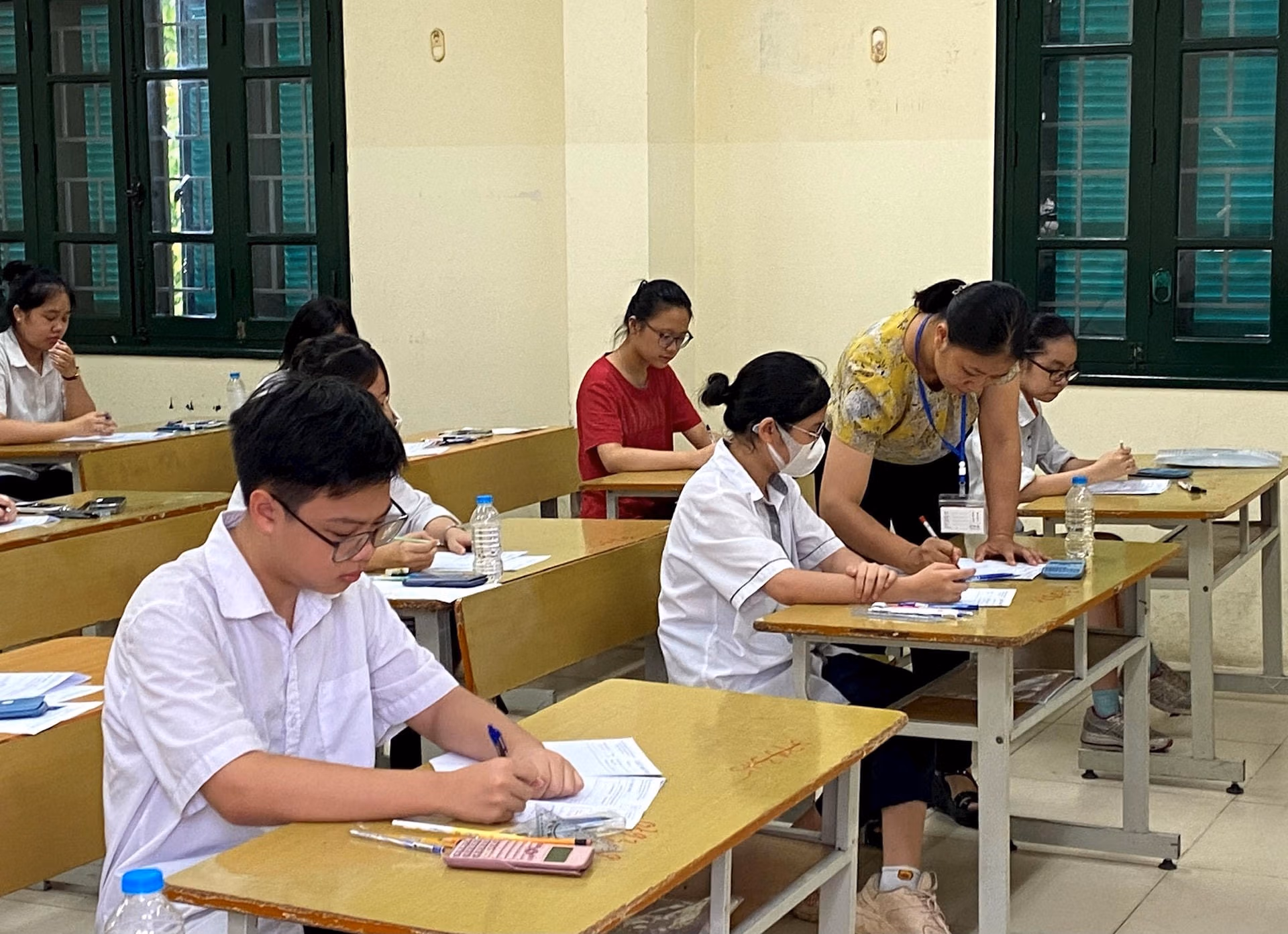 Kỳ thi tuyển sinh vào lớp 10 THPT công lập năm học 2023 - 2024 của thành phố Hà Nội diễn ra từ ngày 9 - 12/6. Ngày hôm qua (10/6), hơn 100.000 thí sinh đã hoàn thành bài thi môn Ngữ văn và Ngoại ngữ. Theo đánh giá của học sinh, giáo viên, đề thi khá vừa sức, mức phổ điểm của 2 môn từ 7, 8 điểm. Sáng nay, các thí sinh tiếp tục bước vào bài thi môn Toán với thời gian làm bài 120 phút.