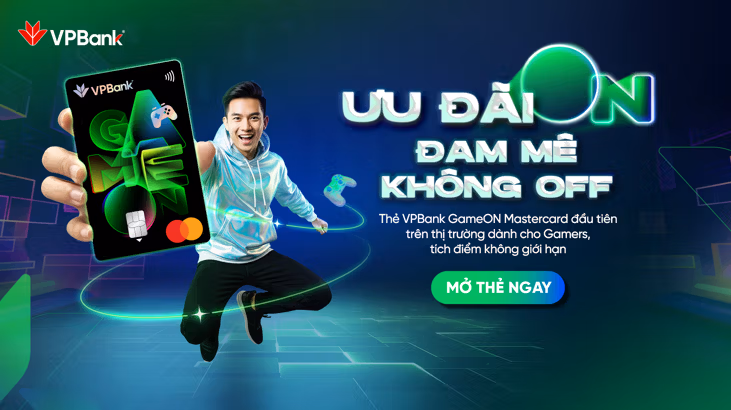 Từ nạp game, xem phim đến nghe nhạc trực tuyến, VPBank GameON Mastercard giúp người dùng tích điểm lên đến 10% cho các dịch vụ giải trí số, đồng thời mở rộng ưu đãi cho chi tiêu hằng ngày. Không chỉ là thẻ thanh toán, VPBank GameON được thiết kế dành riêng cho lối sống giải trí số của thế hệ trẻ.