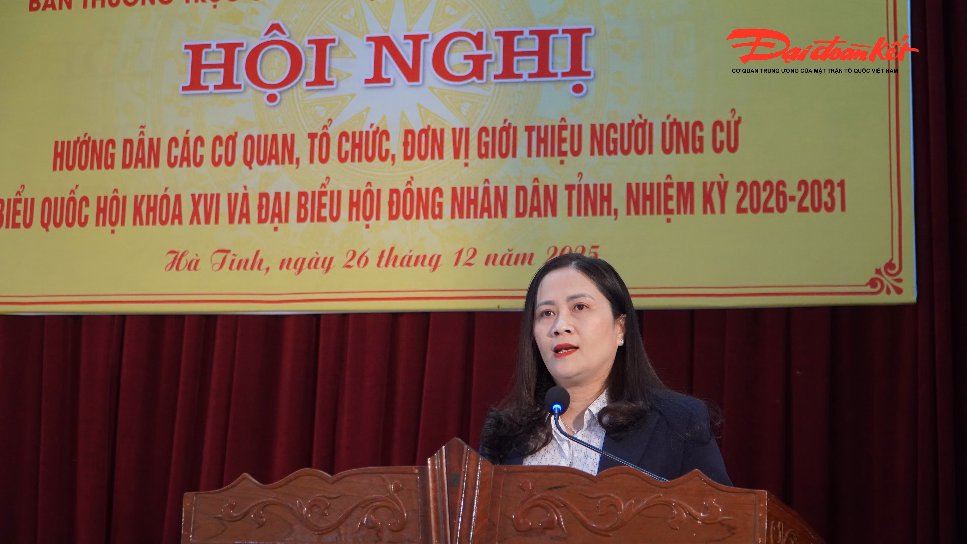 Sáng 26/12, Ban Thường trực Ủy ban MTTQ Việt Nam tỉnh Hà Tĩnh tổ chức Hội nghị Hướng dẫn các cơ quan, tổ chức, đơn vị giới thiệu người ứng cử đại biểu Quốc hội (ĐBQH) khóa XVI và đại biểu HĐND tỉnh, nhiệm kỳ 2026-2031.