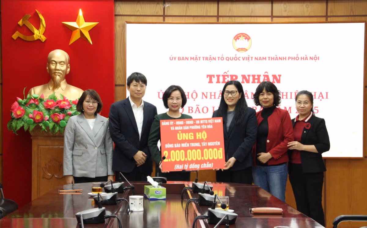 Trao số tiền 2 tỷ đồng tới lãnh đạo Ủy ban MTTQ Việt Nam Thành phố, đại diện lãnh đạo phường Yên Hòa, bà Trịnh Thị Dung, Phó Bí thư Đảng ủy, Chủ tịch UBND phường Yên Hòa cho biết: Hưởng ứng Lời kêu gọi của Ủy ban Trung ương MTTQ Việt Nam, Ban Thường trực Ủy ban MTTQ Việt Nam thành phố Hà Nội về việc ủng hộ đồng bào miền Trung - Tây Nguyên bị thiệt hại do mưa lũ gây ra, Ban Thường trực Ủy ban MTTQ Việt Nam phường Yên Hòa đã có văn bản gửi các tổ chức thành viên; các cơ quan, tổ chức, doanh nghiệp, trường học; các Chi bộ, Tổ dân phố, Ban Công tác Mặt trận và các tầng lớp nhân dân phường Yên Hòa về việc quyên góp ủng hộ, tăng cường thông tin đến cán bộ, đảng viên, hội viên, đoàn viên và các tầng lớp nhân dân về thiệt hại nghiêm trọng tại các tỉnh miền Trung - Tây Nguyên; nhấn mạnh tính cấp bách của công tác cứu trợ; kêu gọi, vận động các tổ chức, cá nhân tham gia ủng hộ đồng bào bị thiệt hại.