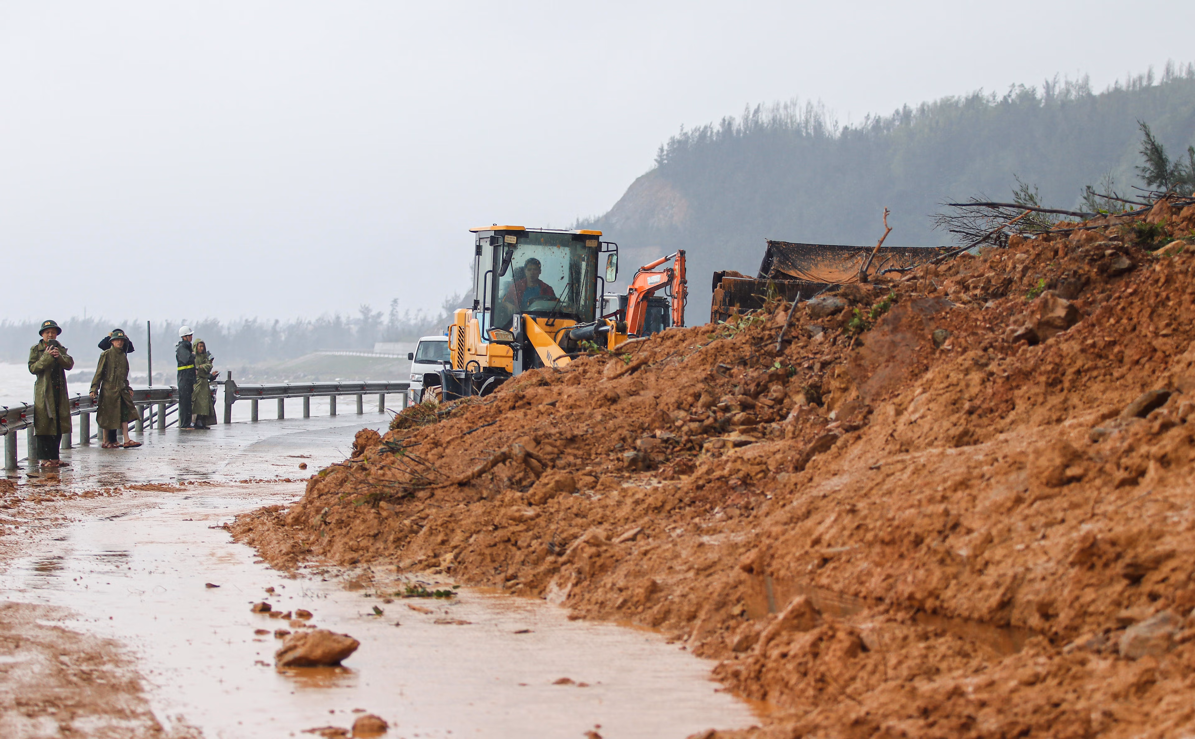 Ảnh hưởng của mưa lớn kéo dài trong đêm 30/10 đã khiến hàng nghìn mét khối đất đá từ vách núi sạt xuống, làm tê liệt nhiều tuyến giao thông trọng yếu ở Hà Tĩnh.