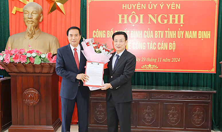 Chiều 29/11, Huyện ủy Ý Yên công bố Quyết định của Ban Thường vụ Tỉnh ủy Nam Định về công tác cán bộ.