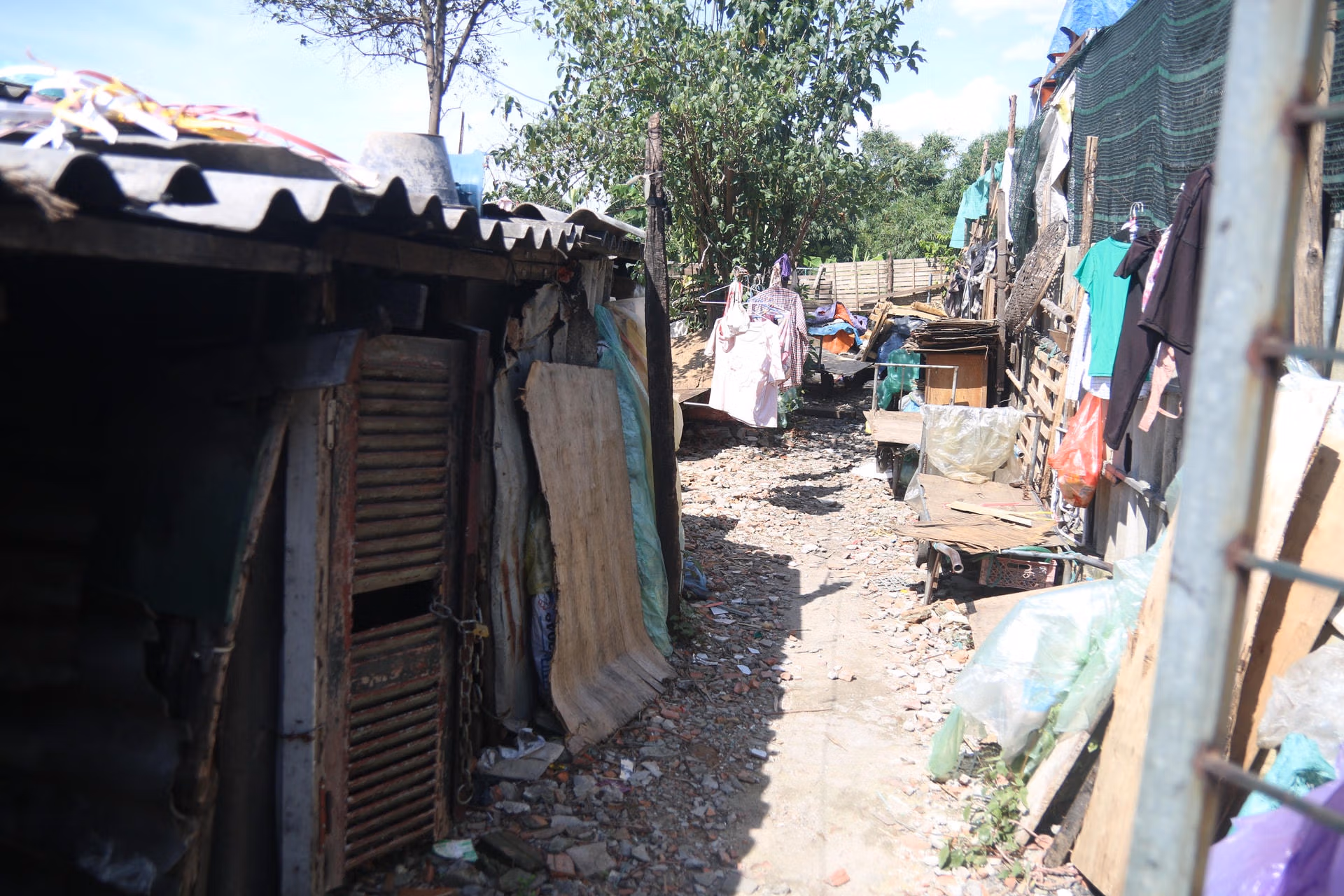 Trong thời tiết nắng như đổ lửa, không khí ẩm mốc bốc lên từ những hành lang của khu trọ. Ở mỗi căn phòng chật hẹp, họ chỉ có đơn sơ 1-2 cái quạt cây. Để giải nhiệt, họ phải để phía trước quạt một chậu nước lớn. Trước phòng của mỗi người đều có một tấm bìa các-tông dài để chắn lối vào. Người dân nói rằng: “Ở đây có rất nhiều chuột nên buộc phải chắn như vậy”.
