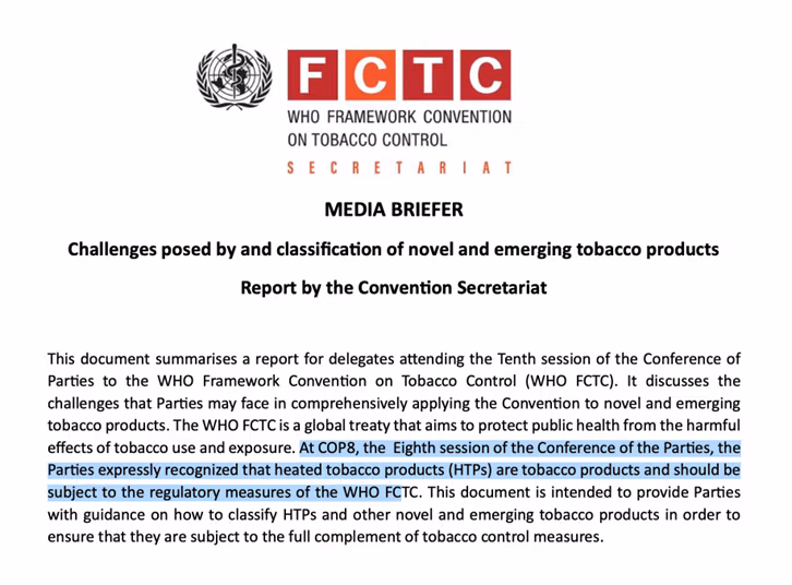 Về thông lệ quốc tế, các công ước, hướng dẫn mà Việt Nam đã ký và áp dụng như Công ước Khung về Kiểm soát thuốc lá (FCTC) của Tổ chức Y tế Thế giới (WHO), hay Tổ chức Tiêu chuẩn hóa quốc tế (ISO) cùng chỉ rõ: TLNN là sản phẩm thuốc lá. Do vậy, nhiều ý kiến cho rằng, nhận định TLNN là thuốc lá phù hợp với cơ sở pháp lý hiện hành của Việt Nam lẫn văn bản quốc tế.
