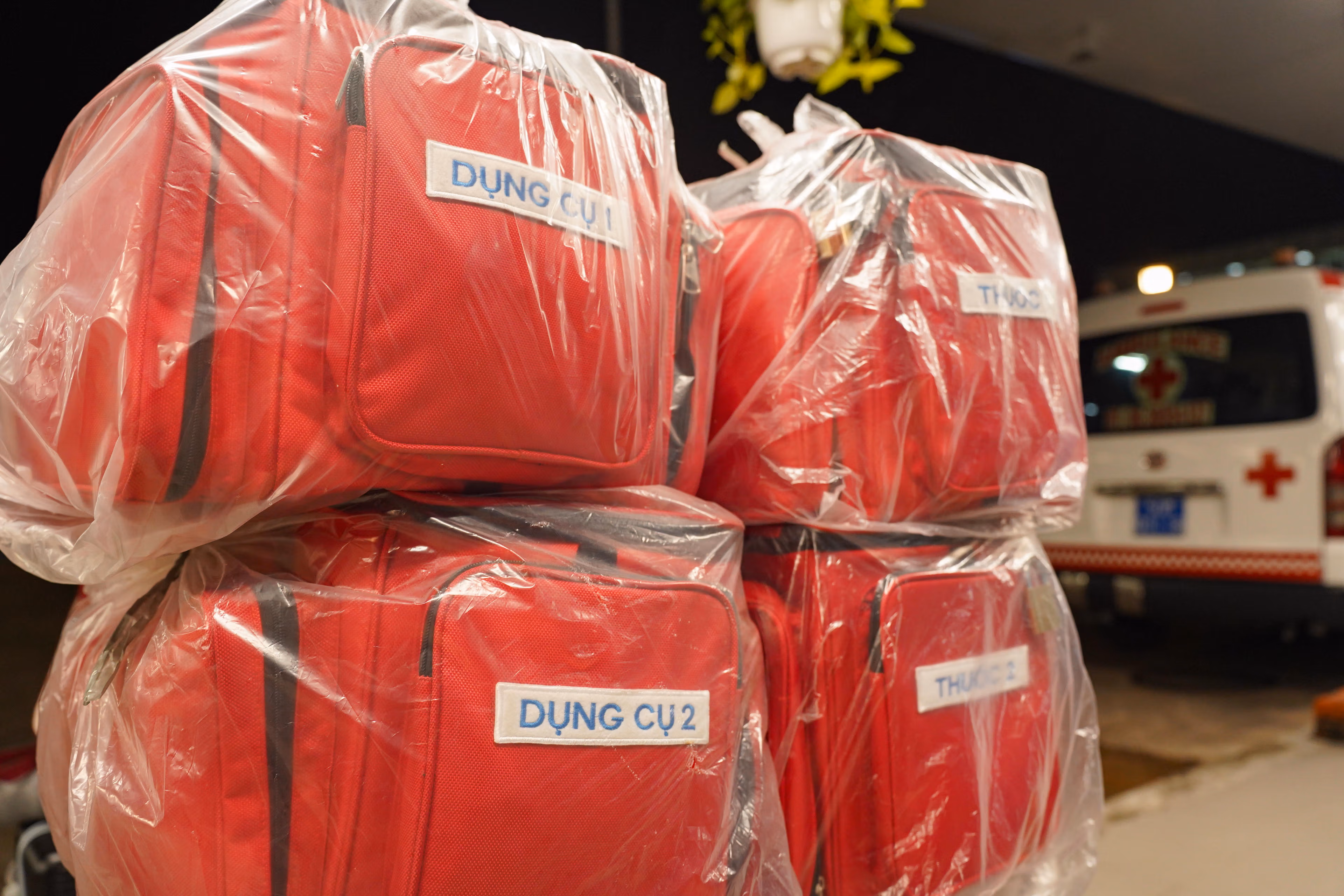 Ngoài ra, mỗi tổ mang theo 500 túi thuốc gia đình gồm thuốc hạ sốt, oresol, thuốc tiêu chảy, thuốc cảm, dung dịch sát khuẩn và vật tư sơ cứu, nâng tổng số túi thuốc lên 2.500 – được chuẩn bị từ nguồn đóng góp của các bệnh viện.