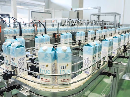 Nhà máy sử dụng nguyên liệu chế biến hoàn toàn từ nguồn sữa tươi chất lượng hàng đầu của các trang trại công nghệ cao TH tại tỉnh Moscow và Kaluga. Nhờ nguồn gien bò sữa cao sản nhập khẩu từ Mỹ, công nghệ tiên tiến và khoa học quản trị hiện đại, đàn bò TH tại Nga cho năng suất sữa trung bình đạt 40-41 lít/con/ngày, nhiều con 60-90 lít/ngày, cá biệt có con đạt 104 lít/ngày. Chất lượng sữa cũng vượt trội với độ béo 4,0% và độ đạm 3,2% cao nhất nước Nga.
