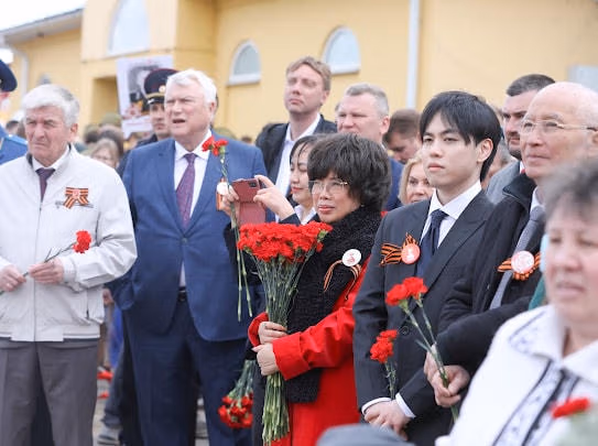 Ngay sau đó, đoàn người ở quảng trường rẽ thành hai hàng rào danh dự, chào đón Phó thống đốc Potemkin và Bà Thái Hương tiến về đài tưởng niệm. Một khoảnh khắc tự hào đối với những người Việt Nam tại sự kiện, khoảnh khắc một nhân cách Việt Nam ghi dấu trong lòng người dân Nga.