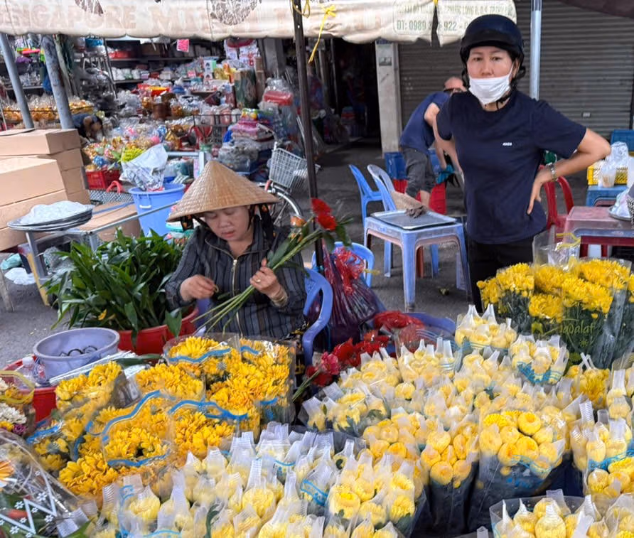 Bà Lê Thị Minh Mẫn, tiểu thương bán hoa tại chợ Phước Long giải thích lý do giá hoa tươi tăng cao, giá hoa tăng do nguồn hàng từ Đà Lạt về ít, trong khi chi phí vận chuyển cao hơn. “Chúng tôi cố gắng giữ mức tăng vừa phải để khách còn mua hoa. Từ tối hôm qua đến sáng nay, lượng hoa bán ra tăng gấp đôi ngày thường”, bà Mẫn chia sẻ.