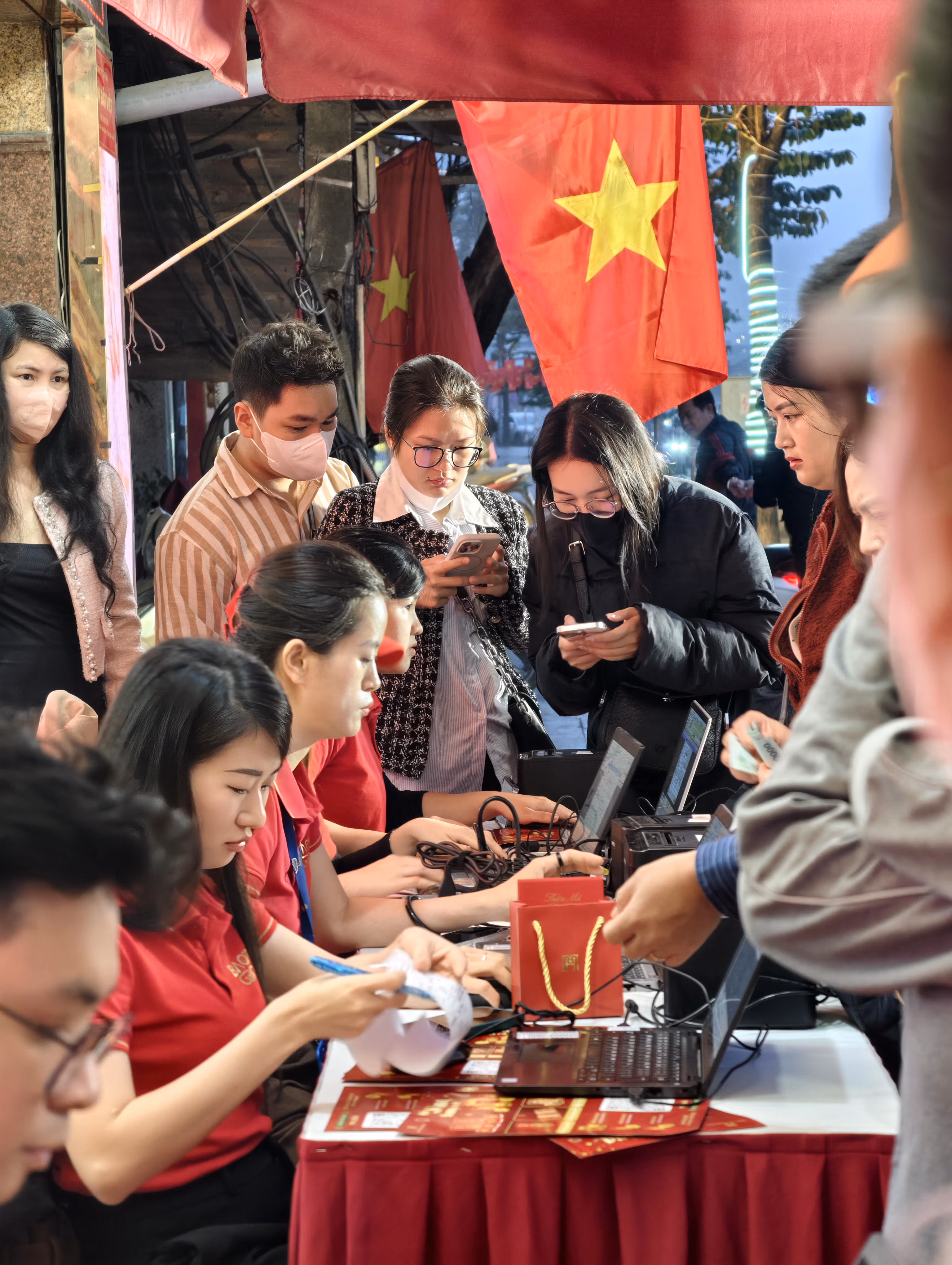 Ghi nhận tại cửa hàng Bảo Tín Mạnh Hải trên Phố Ngô Quyền, từ sáng sớm, nhiều người dân đã xếp hàng chờ mua vàng lấy may. Chị Phương Anh, trú tại phường Bồ Đề, Hà Nội chị làm việc ở phố Nguyễn Du nên hôm nay chị đặc biệt đi làm sớm để ghé tiệm vàng mua. Năm nay chị chỉ chọn mua một sản phẩm vàng bản vị loại rất nhỏ, khoảng 0,1 chỉ, mang ý nghĩa tượng trưng.
