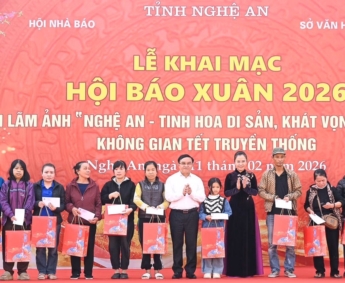 Nhân dịp này, Ban tổ chức Hội báo Xuân Bính Ngọ 2026 đã trao quà cho các gia đình có hoàn cảnh khó khăn trên địa bàn phường Thành Vinh và Trường Vinh, hưởng ứng phong trào “Tết vì người nghèo – không ai bị bỏ lại phía sau”, góp phần lan tỏa tinh thần nhân ái trong những ngày đầu Xuân mới.