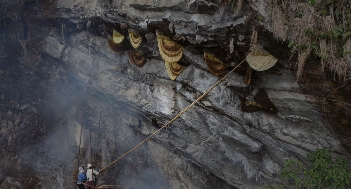 Aita, một người dân thuộc cộng đồng thu hoạch mật ong truyền thống từ các tổ ong cách mặt đất hàng trăm feet, cho biết: “Tai nạn rất dễ xảy ra, vì vậy, chúng tôi vừa khai thác mật ong, vừa phải giữ an toàn”.