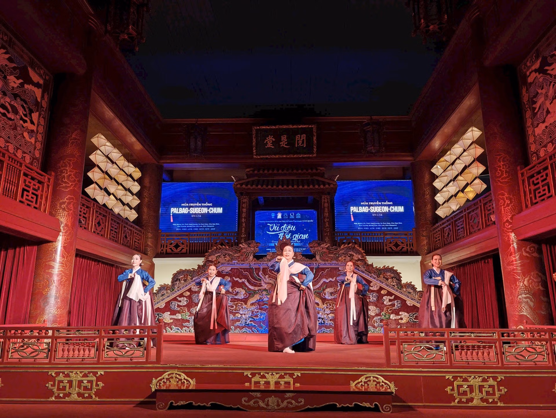 Tối 22/11, tại sân khấu Nhà hát Duyệt Thị Đường (Đại nội Huế) đã diễn ra Chương trình “Vũ điệu thời gian: Truyền thống & Hiện đại” do Hiệp hội Múa Gyeonggi Hàn Quốc biểu diễn.