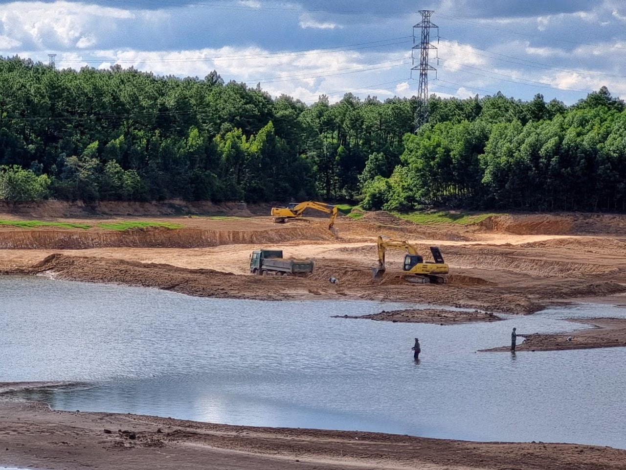 Trên công trường thuộc Dự án Nạo vét, cải tạo hồ chứa nước Điều Gà (xã Vĩnh Ninh, huyện Quảng Ninh, Quảng Bình) cũng sôi động không kém.