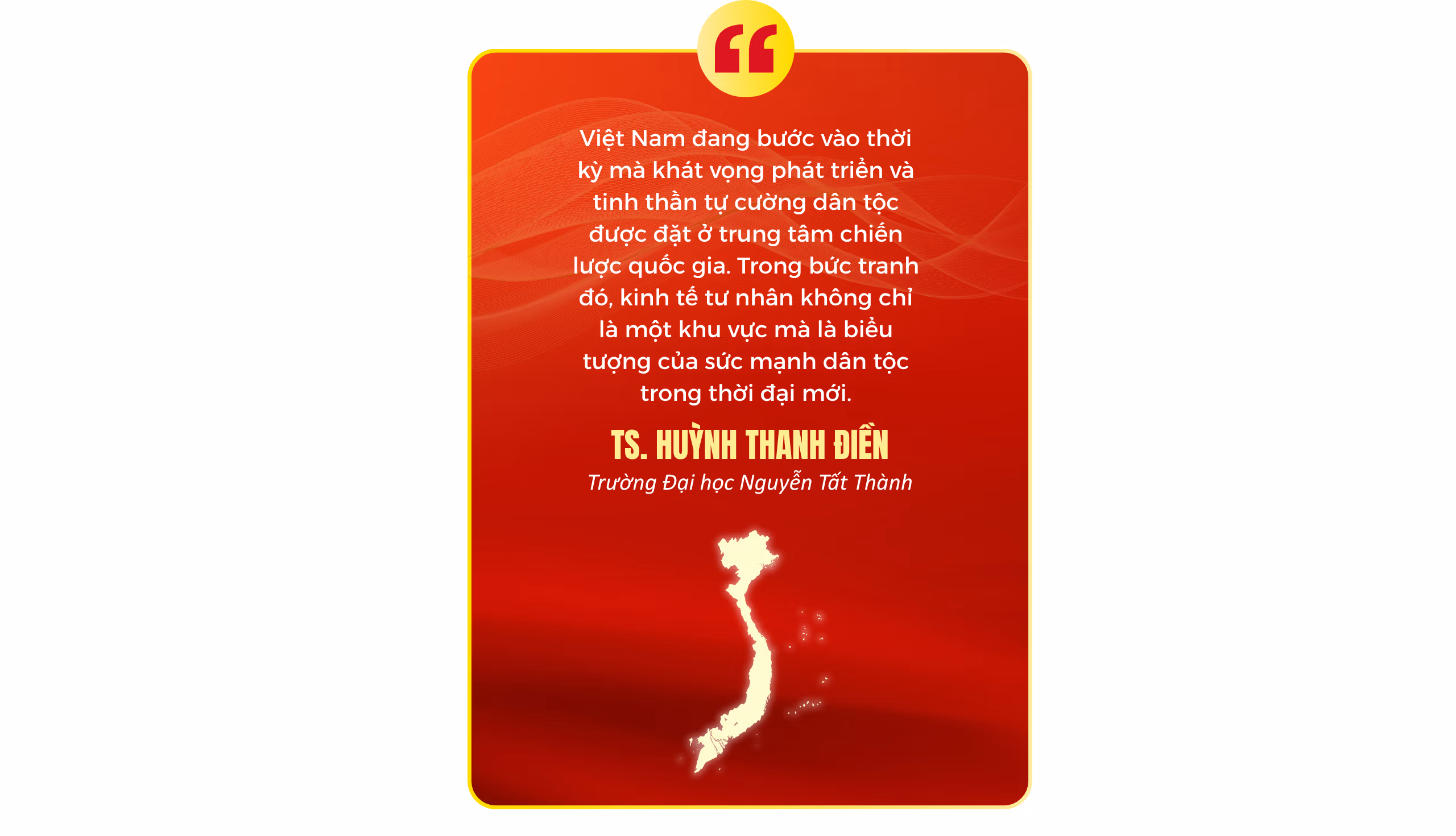 Khi khu vực tư nhân lớn mạnh, quốc gia sẽ lớn mạnh. Mỗi DN là một hạt nhân kiến tạo, mỗi doanh nhân là người mở lối, góp phần thắp sáng khát vọng phát triển của dân tộc.