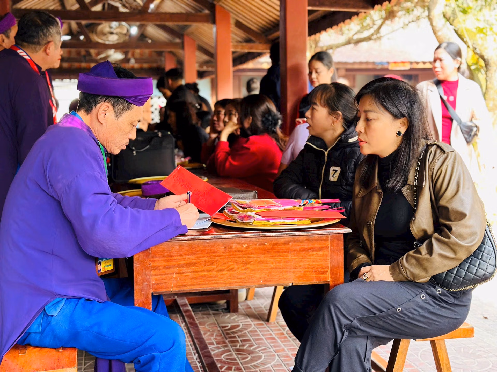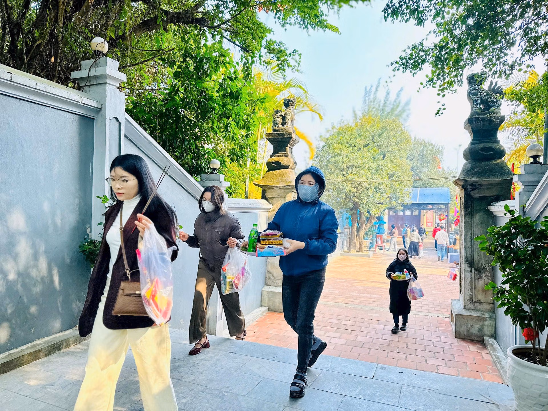 Ghi nhận của PV, những ngày cuối năm Giáp Thìn, du khách khắp mọi miền tìm đến Đền Bà Hải để dâng hương. Dòng người tấp nập hành lễ ở tất cả các khu vực bên trong đền.