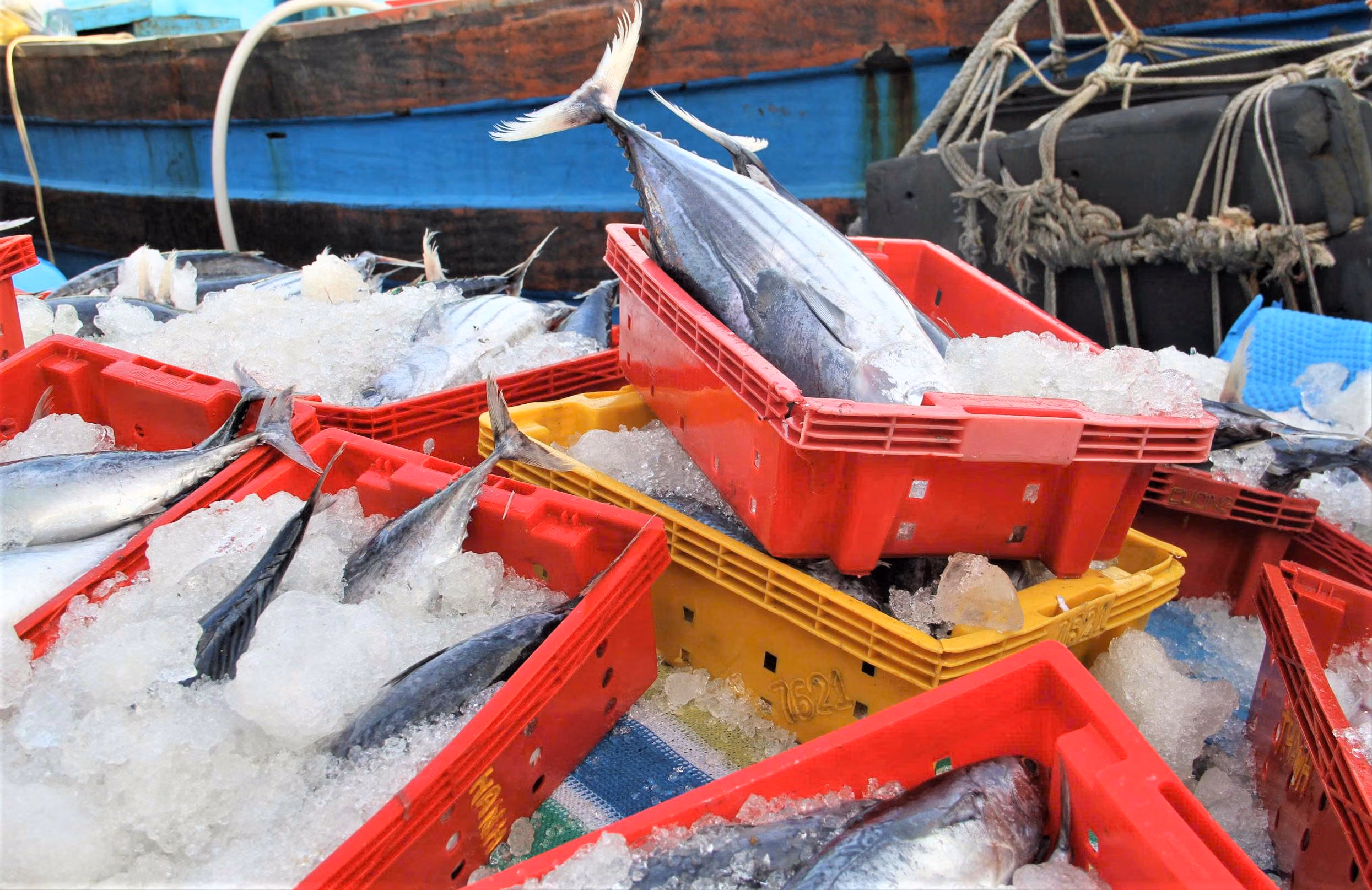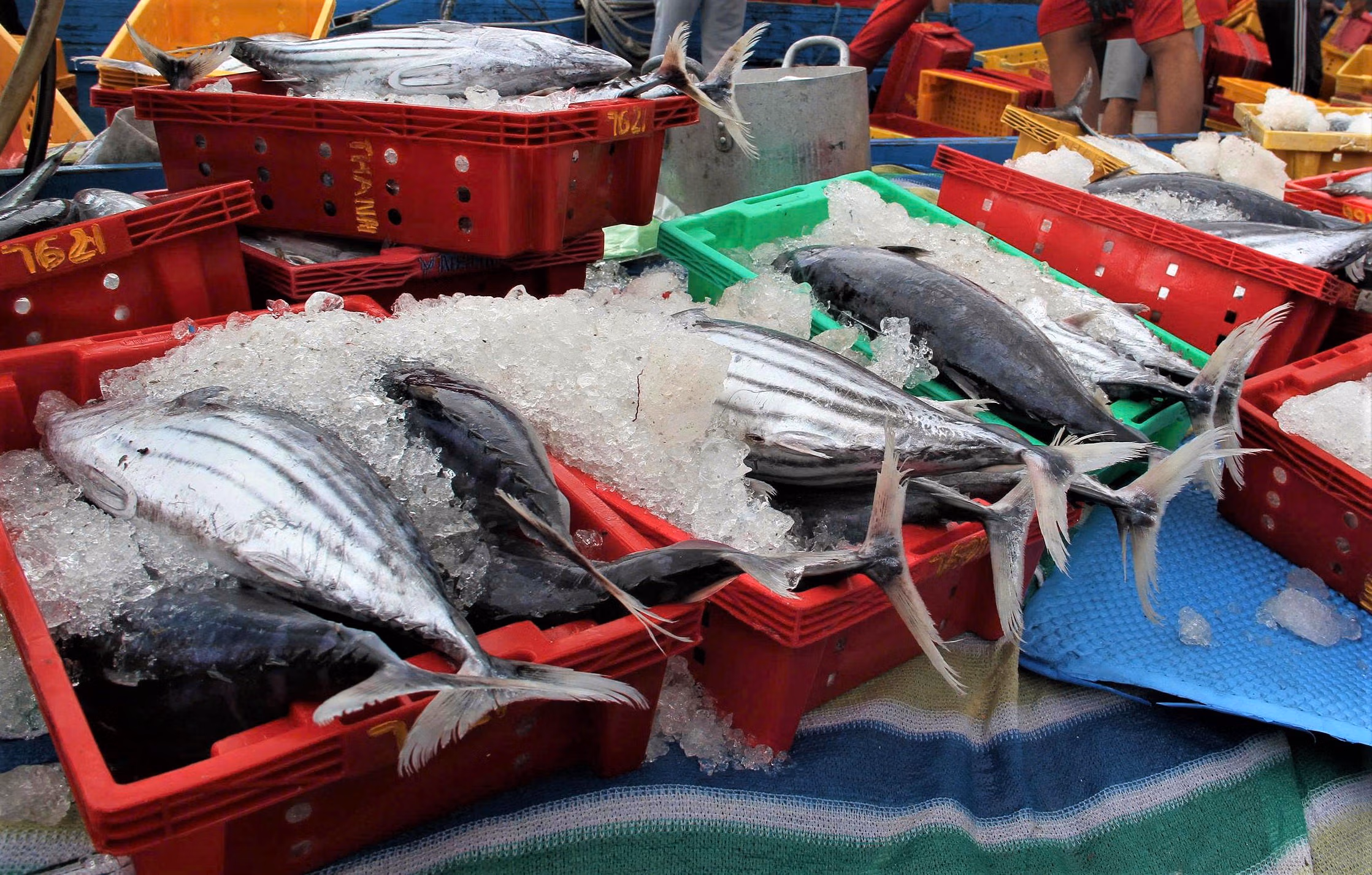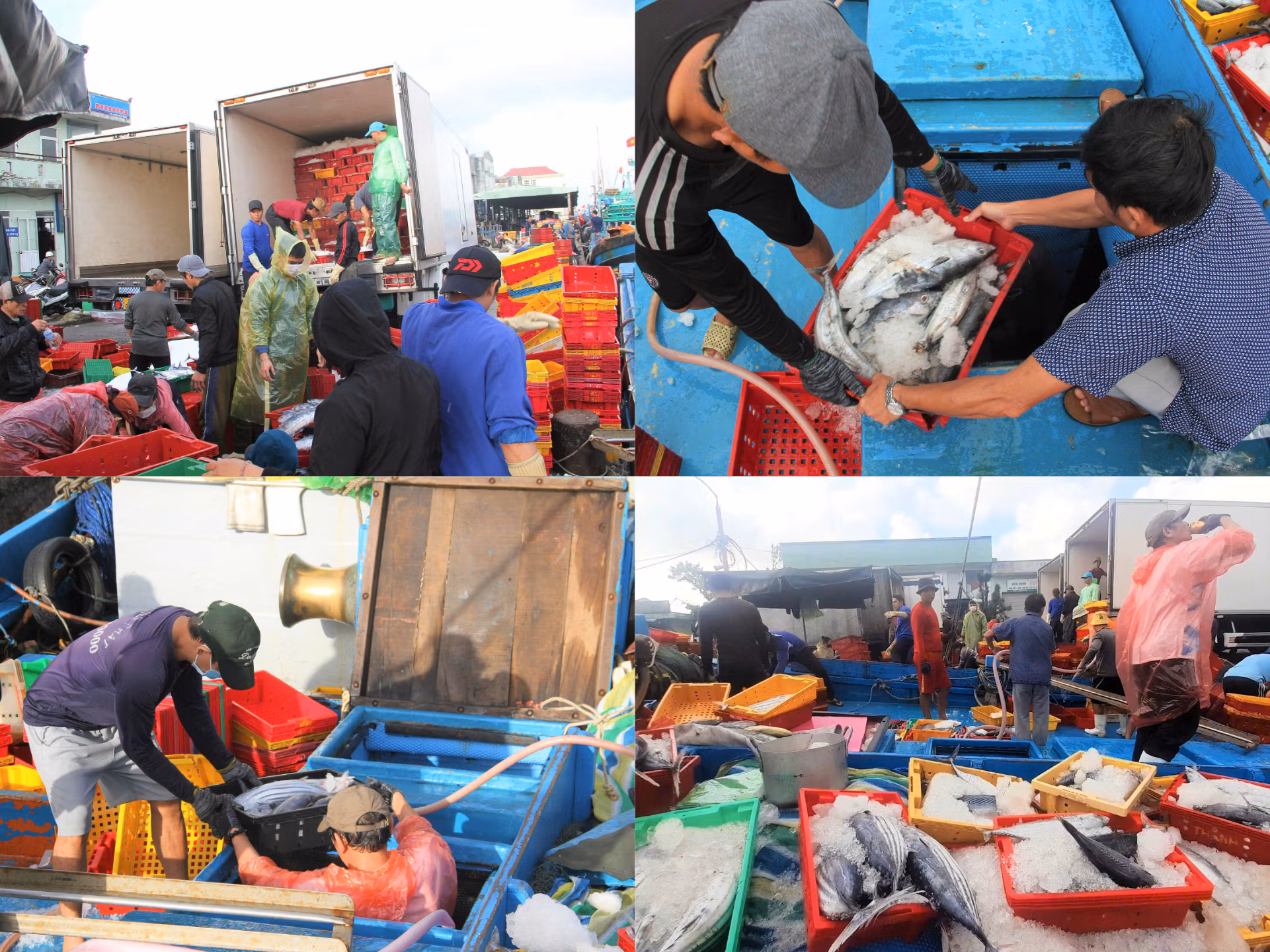 Từ ngày 2 đến 4/1, không khí tại cảng cá luôn sôi động. Khi các khoang tàu vừa mở, hải sản nhanh chóng được bốc dỡ, chuyển lên bờ. Cá ngừ sọc dừa, cá hố, cá trích, cá thu, cá cơm;… được phân loại, cân đếm và giao dịch ngay tại cầu cảng.