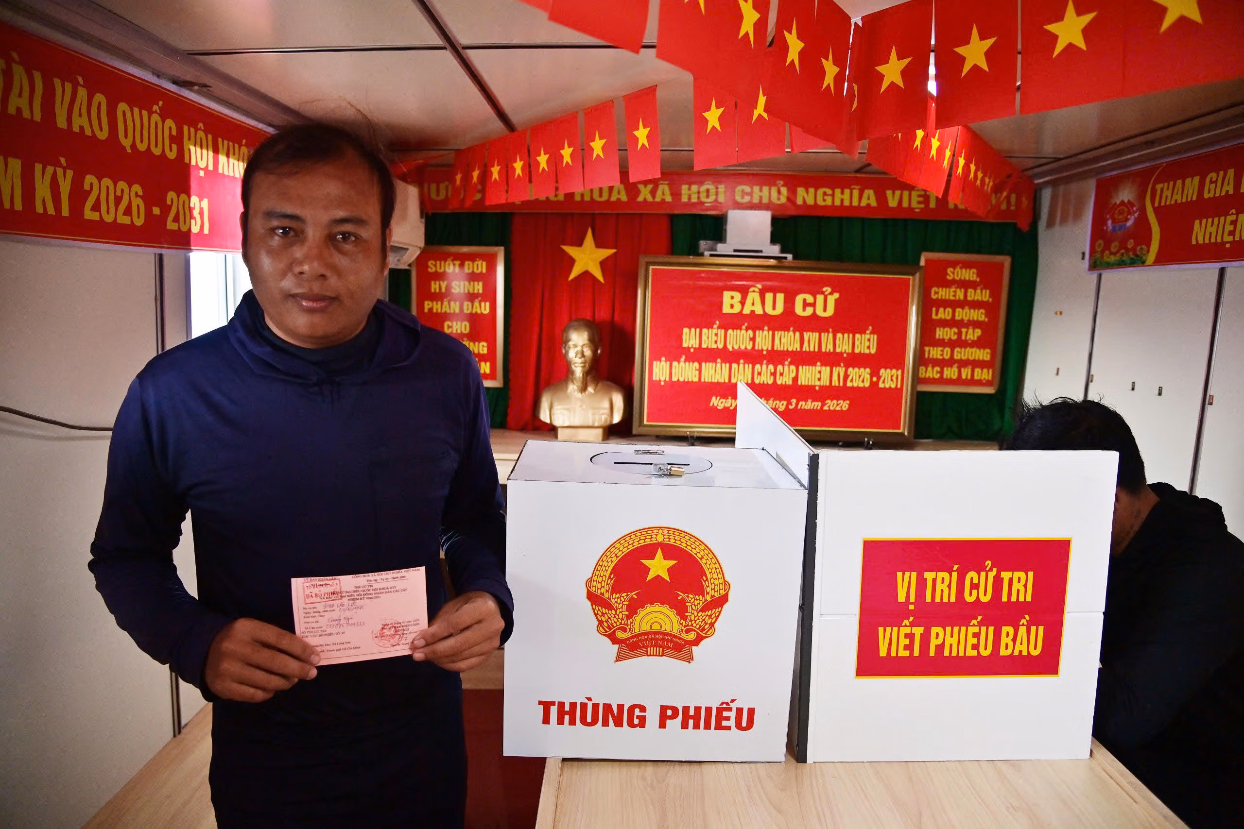 Giữa sóng gió trùng khơi xa xôi, mỗi lá phiếu được ngư dân bỏ vào thùng phiếu đều thể hiện niềm tin, trách nhiệm và sự gắn bó máu thịt với đất liền.