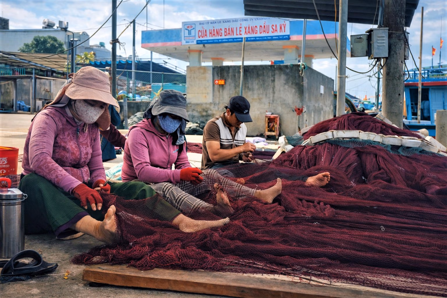 Trong khi đó, tại cảng cá Sa Kỳ, Tịnh Hòa, nhiều tàu thuyền của ngư dân tỉnh Quảng Ngãi và các tỉnh lân cận khẩn trương vá lưới, kiểm tra lại máy móc và nhập nhiên liệu và nhu yếu phẩm để chuẩn bị vươn khơi ở vùng biển Hoàng Sa, Trường Sa của Việt Nam. Các bạn tàu đang hối hả chuẩn bị để vươn khơi đánh bắt hải sản xuyên Tết.
