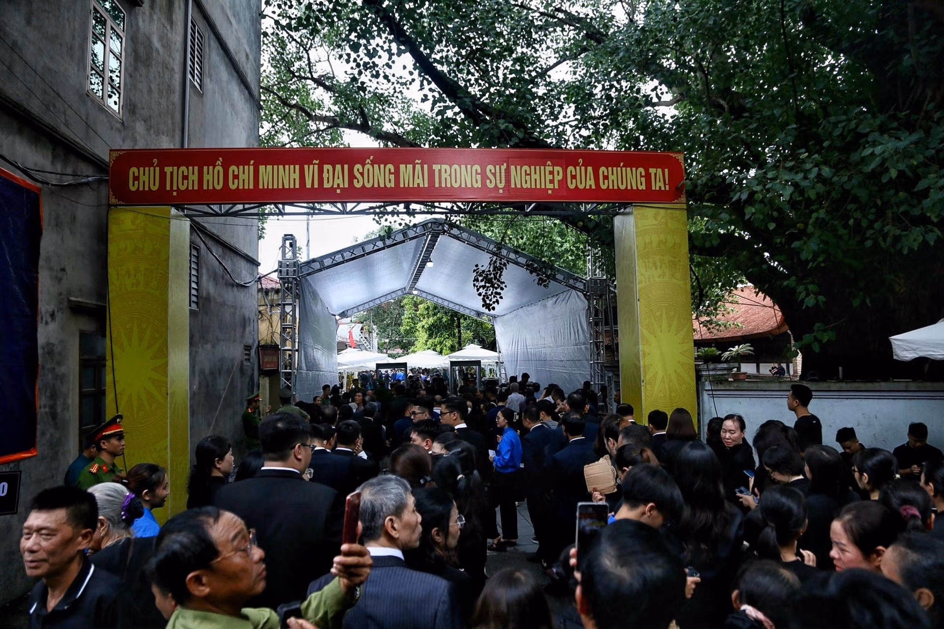 Người dân đến làng Lại Đà viếng Tổng Bí thư Nguyễn Phú Trọng Thứ Năm 25/07/2024 15:03 (GMT+7) Trưa 25/7 tại quê nhà thôn Lại Đà (xã Đông Hội, huyện Đông Anh, Hà Nội) có rất đông người dân đứng xếp hàng chờ đến lượt viếng Tổng Bí thư Nguyễn Phú Trọng. Ghi nhận của PV Báo Đại Đoàn Kết, dù đã quá giờ trưa nhưng hàng nghìn người dân vẫn xếp hàng chờ đến lượt viếng Tổng Bí thư Nguyễn Phú Trọng.Đến từ huyện Văn Lâm, tỉnh Hưng Yên, anh Nguyễn Văn Hiệp ôm theo di ảnh Tổng Bí thư Nguyễn Phú Trọng, cùng gia đình xếp hàng. Anh Hiệp cho biết, lúc nghe tin Tổng Bí thư từ trần, anh đã chọn in tấm ảnh đẹp của ông, đóng khung lại để mang tới lễ viếng.“Tôi vô cùng xúc động khi trên tay nâng di ảnh, hòa vào dòng người đông đúc mang theo niềm tiếc thương vô hạn đến viếng bác Trọng, người vô cùng giản dị, cống hiến cho nhân dân, đất nước đến hơi thở cuối cùng. Sau lễ viếng, di ảnh của Tổng Bí thư sẽ được tôi treo trang trọng trong nhà bên cạnh bức ảnh Bác Hồ và Đại tướng Võ Nguyên Giáp", anh Hiệp nói.Lặng lẽ và trang nghiêm, người dân xếp hàng theo sắp xếp của lực lượng chức năng vào viếng Tổng Bí thư Nguyễn Phú Trọng.Dù đông nhưng người dân vẫn xếp hàng ngay ngắn chờ đến lượt viếng.Lễ viếng Tổng Bí thư Nguyễn Phú Trọng, được tổ chức theo nghi thức Quốc tang tại Nhà tang lễ Quốc gia số 5 Trần Thánh Tông, thành phố Hà Nội từ 7 giờ đến 22 giờ ngày 25/7 và từ 7 giờ đến 13 giờ ngày 26/7/2024. Cùng thời gian trên, Lễ viếng được tổ chức tại quê nhà Tổng Bí thư tại xã Đông Hội, huyện Đông Anh, thành phố Hà Nội.Lực lượng thanh niên phục vụ nước uống cho người dân đến viếng Tổng Bí thư.Nỗi buồn, thương tiếc hiện rõ trên gương mặt từng người dân đến viếng Tổng Bí thư Nguyễn Phú Trọng.Dòng người liên tục vào viếng Tổng Bí thư Nguyễn Phú Trọng. Lê Khánh