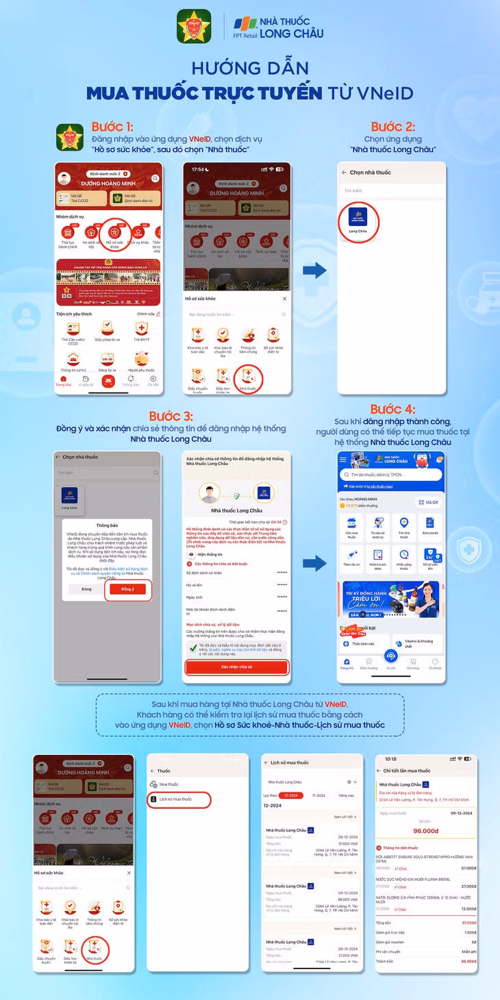 Với sự hợp tác này, người dân sẽ có thể dễ dàng mua thuốc trực tuyến an toàn, tiện lợi thông qua giải pháp kết nối app-to-app giữa ứng dụng Nhà thuốc Long Châu và VNeID.