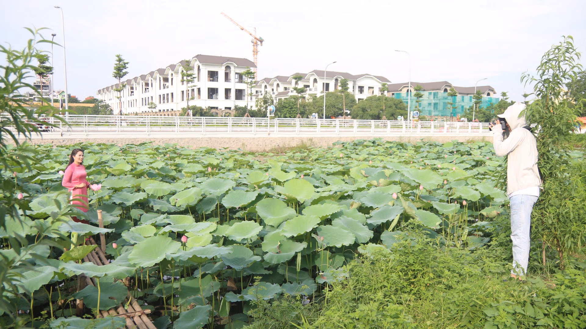 Người dân từ các tỉnh lân cận đổ về Hà Nội chụp ảnh mùa sen Thứ Tư 15/06/2022 09:05 (GMT+7) Không chỉ giới trẻ Hà Nội, những người dân từ nhiều tỉnh khác cũng bắt đầu đổ về những đầm sen tại Thủ đô để kịp check in mùa sen nở. Cứ độ đầu tháng 6, những đầm sen tại Tây Hồ bắt đầu nở rộ thu hút đông đảo người dân đến chụp ảnh. Tại đây có đầy đủ các dịch vụ từ thuê quần áo, trang điểm đến chụp ảnh.Chị Nguyễn Thanh Tâm (Người dân tại Bắc Giang) chia sẻ: "Từ 7h sáng chúng tôi bắt đầu khởi hành đến Hà Nội. Sau khi nghỉ trưa, gia đình chúng tôi tổ chức đến đầm sen chụp ảnh. Đây là lần đầu tiên chúng tôi có cơ hội tham quan nơi đây nên cảm thấy rất thích thú và chắc chắn sẽ quay trở lại trong dịp gần nhất".Không chỉ người dân tại Bắc Giang, chị Nguyễn Thị Khoa (người dân tại Hải Dương) cũng rất thích thú trước mùa sen tại Thủ đô. Chị Khoa cho biết: "Thực ra chúng tôi đến công viên nước để cho trẻ em chơi, tình cờ thấy được đầm sen ở đây rất đẹp nên ghé vào luôn". Nếu du khách đến các đầm sen tại Hồ Tây từ sáng sớm, mọi người sẽ được chứng kiến quá trình làm trà sen ướp xổi của người nông dân tại làng Nhật Tân.Những người nông dân tại vườn hái sen từ sáng sớm.Theo ông Trọng (chủ đầm sen tại Tây Hồ), đây là thời điểm sen rộ nhất và khách nội thành thường đến vào cuối tuần. Các ngày khác vắng vẻ hơn, đa số là khách từ nhiều tỉnh đổ về. Không chỉ mang lại nguồn thu từ dich vụ chụp ảnh, nơi đây còn giống như một cánh đồng để người dân Tây Hồ làm trà sen ướp xổi. Một phần số sen trong hồ được cắt đi bán, giá trên thị trường dao động từ 120.000 - 150.000 đồng/bó.Từ hồ sen, người dân có thể thấy được quang cảnh phố đi bộ Trịnh Công Sơn ở bên cạnh.Thời tiết tại Hà Nội trong những ngày gần đây khá nhiều nắng thích hợp cho việc chụp hình.Các chủ đầm sen cũng có nhiều đạo cụ như quạt, nón, khăn... để phục vụ nhu cầu. Mức giá chụp ảnh tại đây khá đa dạng tính theo từng bộ dao động từ 300.000 - 600.000 đồng.Các bạn trẻ Hà Nội tranh thủ đi vào những ngày thường để vắng vẻ và không phải chờ có chỗ chụp ảnh. Đức Huy