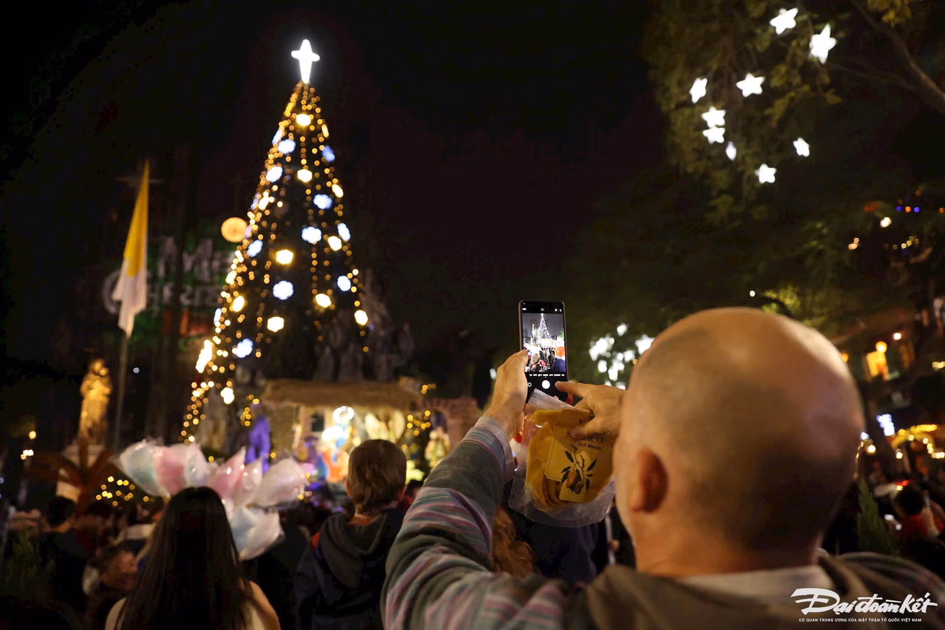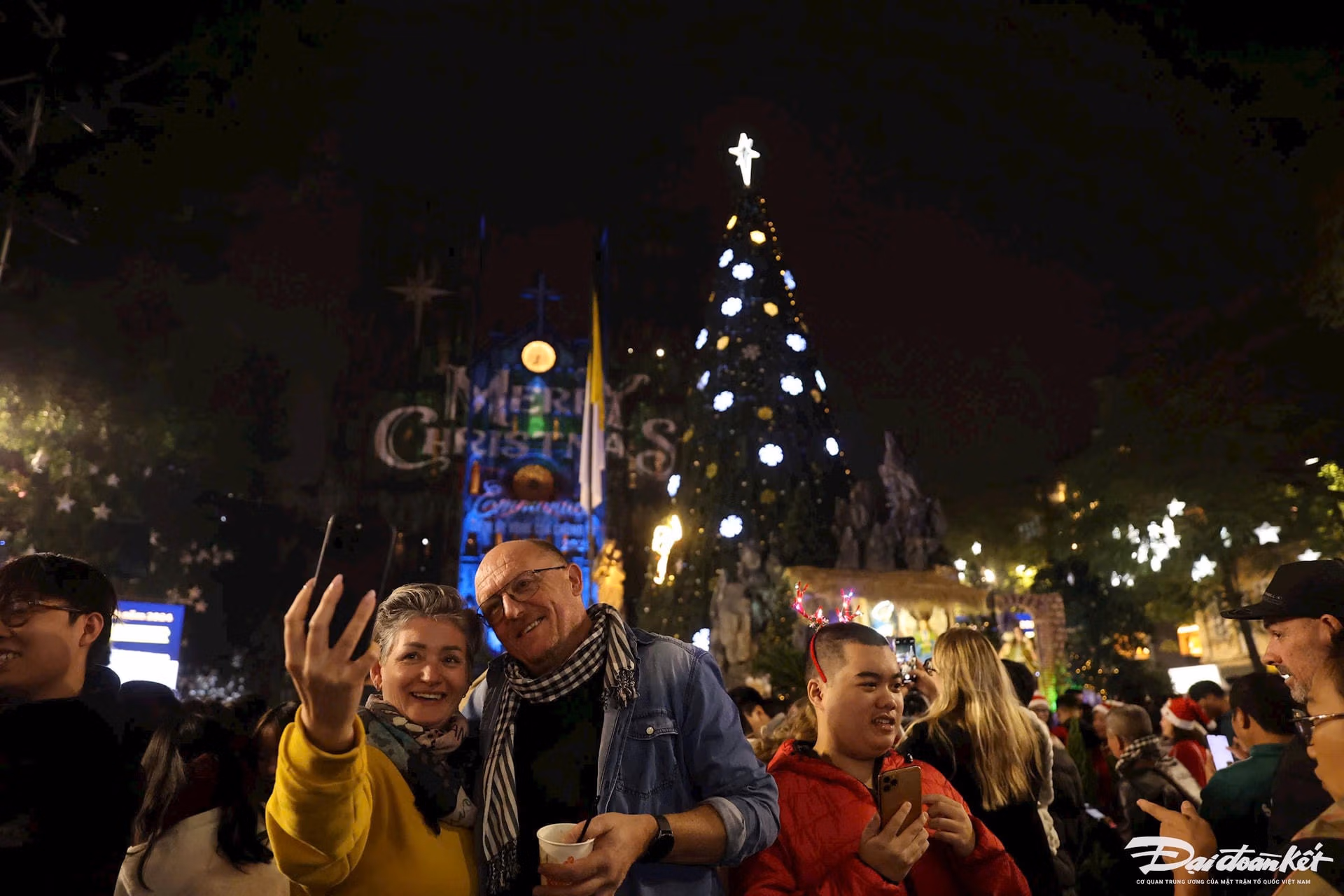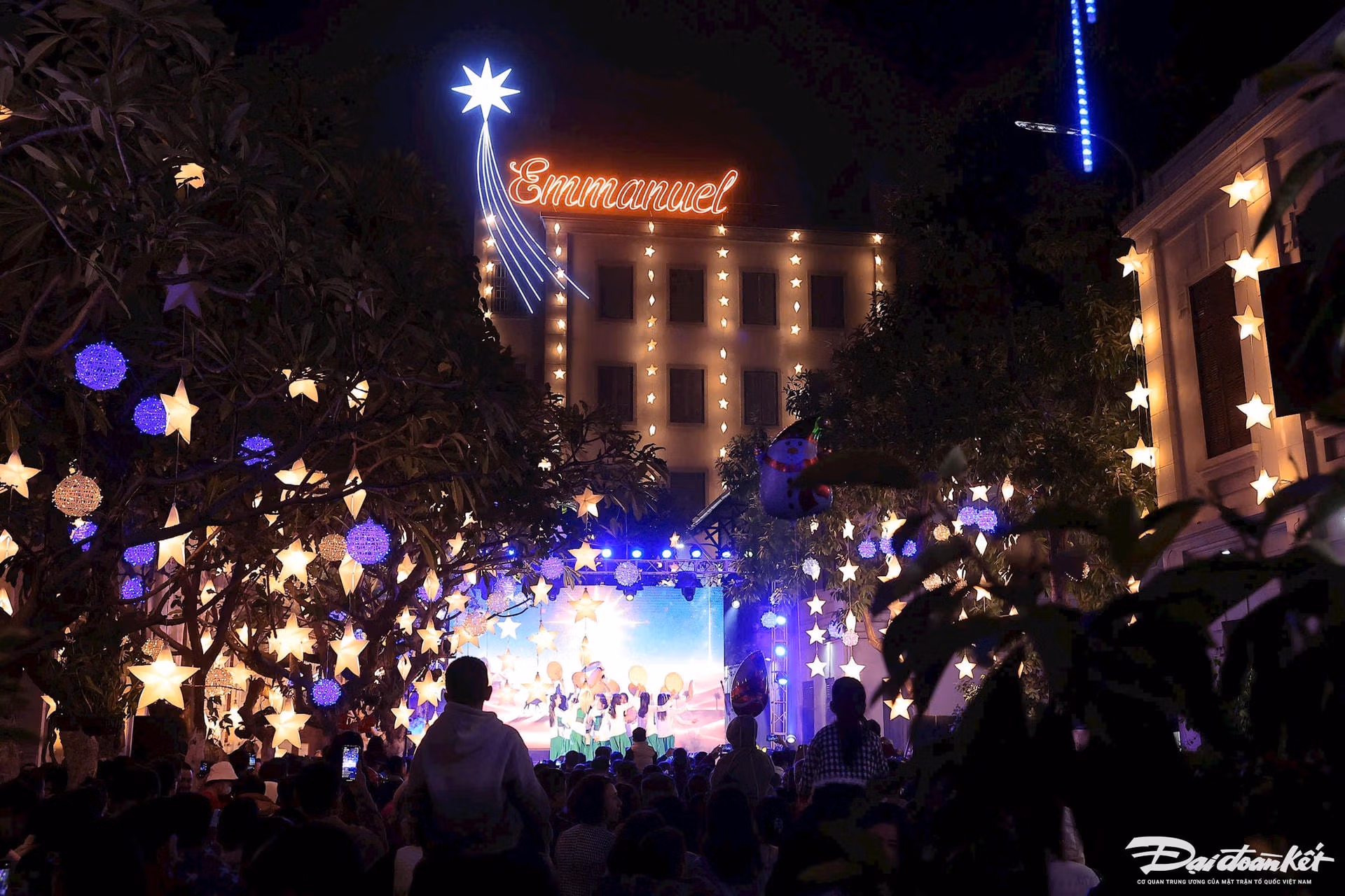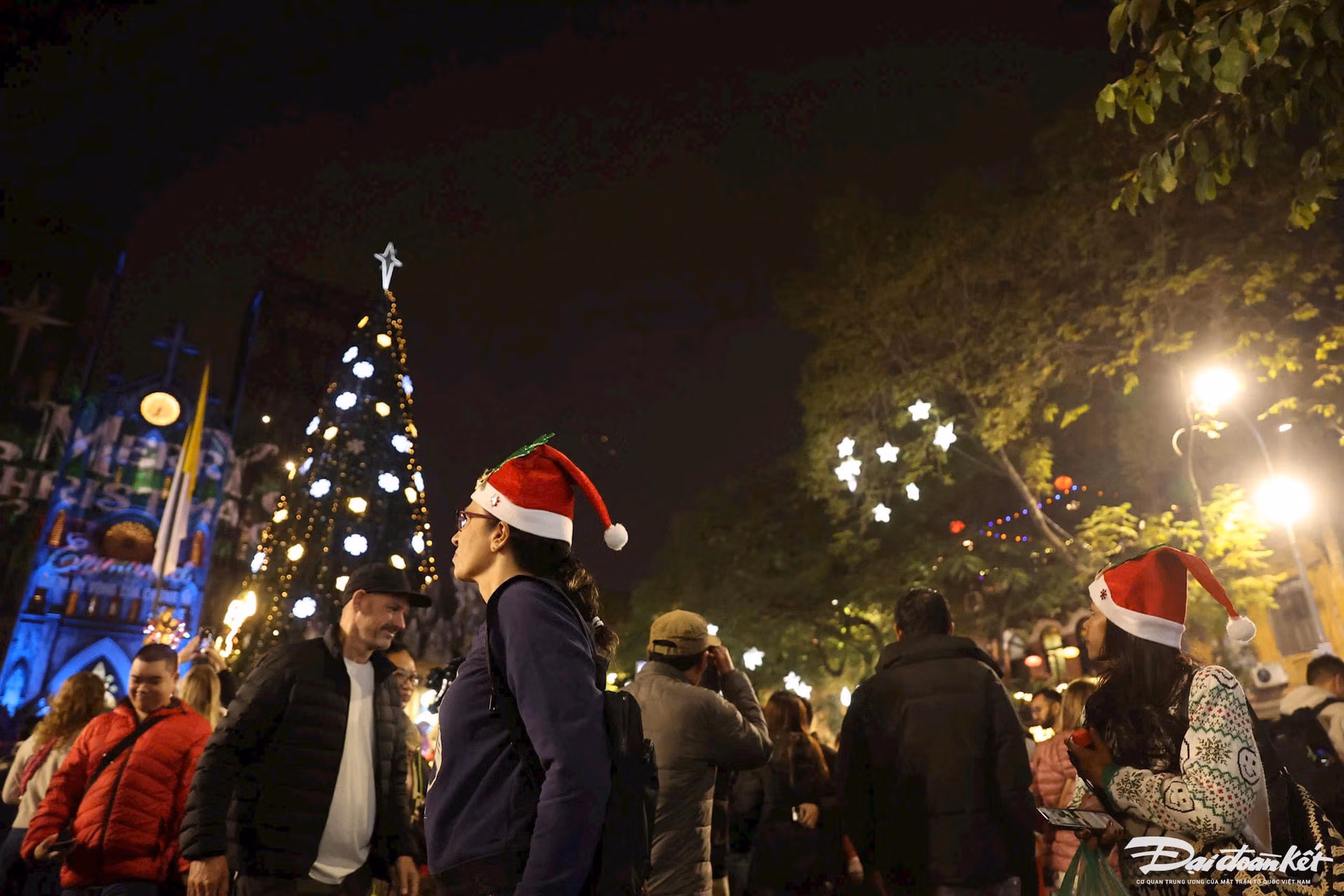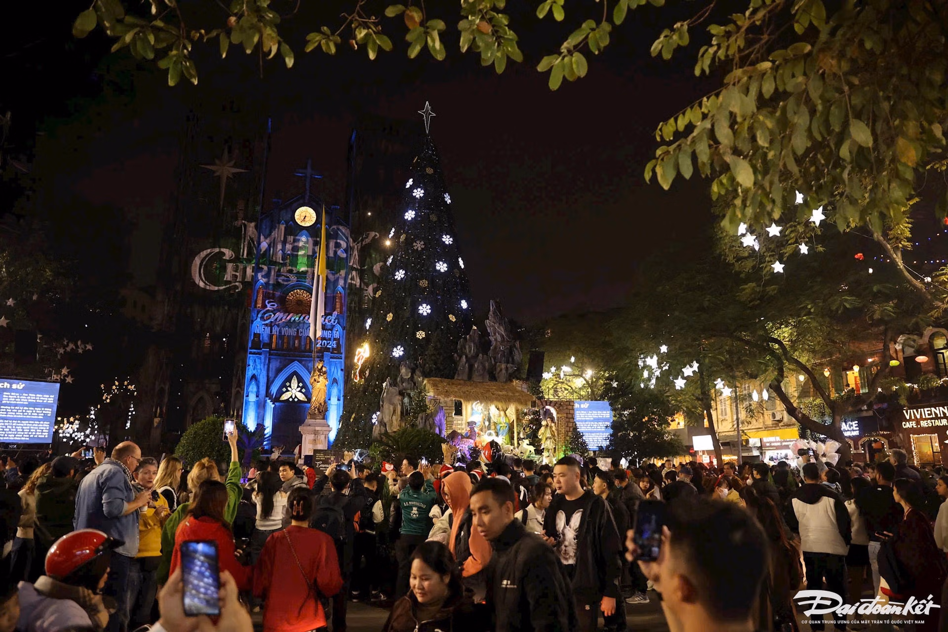 Người Hà Nội xuống phố đón Giáng sinh Thứ Ba 24/12/2024 23:04 (GMT+7) Tối 24/12, người dân Hà Nội đổ ra đường để đi chơi, chụp ảnh hòa chung không khí Giáng sinh (Noel) rộn ràng. Video người dân đổ về Nhà thờ Lớn trong đêm Noel.Tối 24/12, người dân Thủ đô Hà Nội đường và các trung tâm thương mại nhộn nhịp để tận hưởng không khí Giáng sinh. Đèn hoa rực rỡ sắc màu trên khắp phố phường tạo nên một đêm Giáng sinh thật nhiều cảm xúc.Theo ghi nhận của PV Báo Đại Đoàn Kết, ngay từ 20h, tại Nhà thờ Lớn Hà Nội (phố Nhà Chung, quận Hoàn Kiếm) đông đúc người dân, du khách đổ về để đón không khí Giáng Sinh.Nhiệt độ ngoài trời khoảng 18-19 độ C.Chị Nguyễn Thanh Huyền, trú tại Hoài Đức, Hà Nội cho biết: "Rất may Noel không quá lạnh nên dù đông đúc nhưng gia đình tôi vẫn đến Nhà thờ Lớn để hòa chung với không khí đón Giáng sinh cùng mọi người".Tại Giáo xứ Cửa Bắc (phố Cửa Bắc, quận Ba Đình) lung linh trong đêm Giáng Sinh năm 2024.Trẻ em biểu diễn văn nghệ trên sân khấu tại Nhà thờ Hàm Long.Noel là ngày lễ quan trọng nhất trong Thiên Chúa Giáo nên đêm lễ Giáng Sinh tại các giáo xứ luôn thu hút nhiều người quan tâm, tham dự.Phố xá rực rỡ dưới ánh đèn trang trí của giáo xứ Hàm Long. Lê Khánh