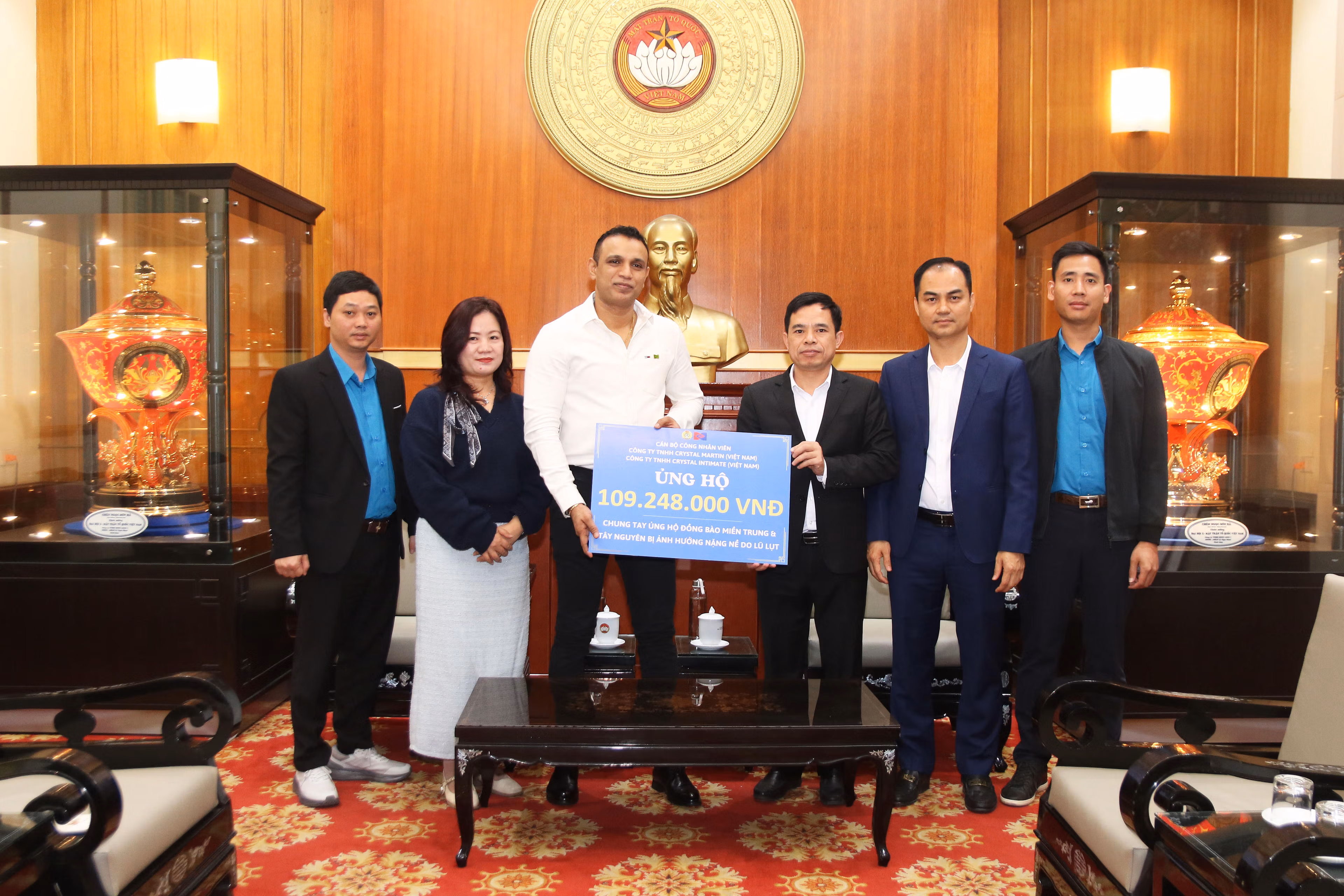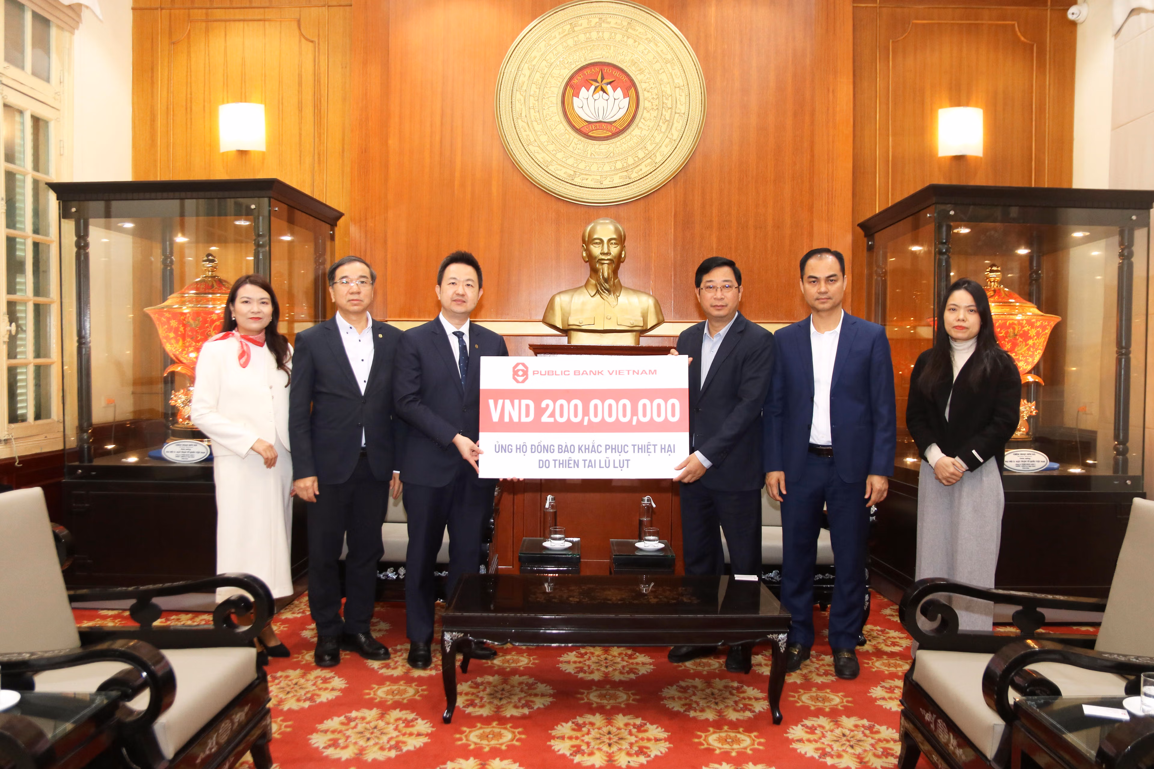 Cùng ngày, đại diện lãnh đạo Cơ quan UBTƯ MTTQ Việt Nam đã tiếp nhận ủng hộ đồng bào khắc phục thiệt hại do thiên tai, lũ lụt từ Public Bank Việt Nam số tiền 200 triệu đồng; Cán bộ, công nhân viên Công ty TNHH Crystal Martin Việt Nam, Công ty TNHH Crystal Intimate Việt Nam ủng hộ 109,248 triệu đồng.