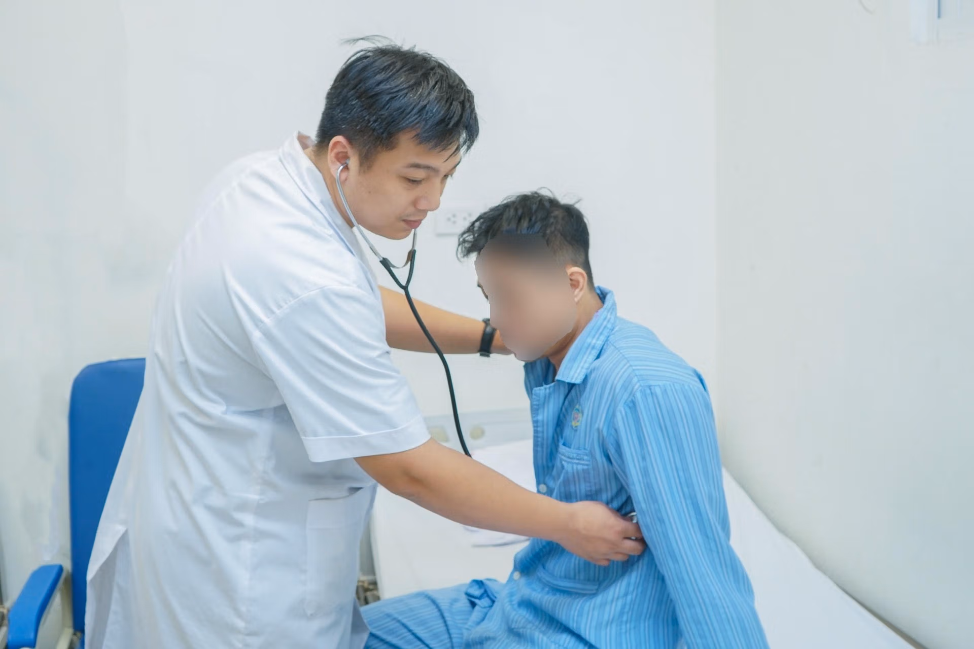 Khai thác tiền sử bệnh án, người bệnh là huấn luyện viên thể hình, do đó rất quan tâm đến thể hình, thường xuyên tập luyện với cường độ cao. Hôm đó, sau khi kết thúc quá trình tập luyện tại phòng tập, người bệnh cảm thấy khó thở, tình trạng khó thở tăng dần, rồi chuyển sang tức ngực tăng và đau thắt ngực, đau theo cơn kéo dài từ 10 -15 phút. Người bệnh được đưa đến cấp cứu tại Trung tâm Tim mạch (Bệnh viện E).