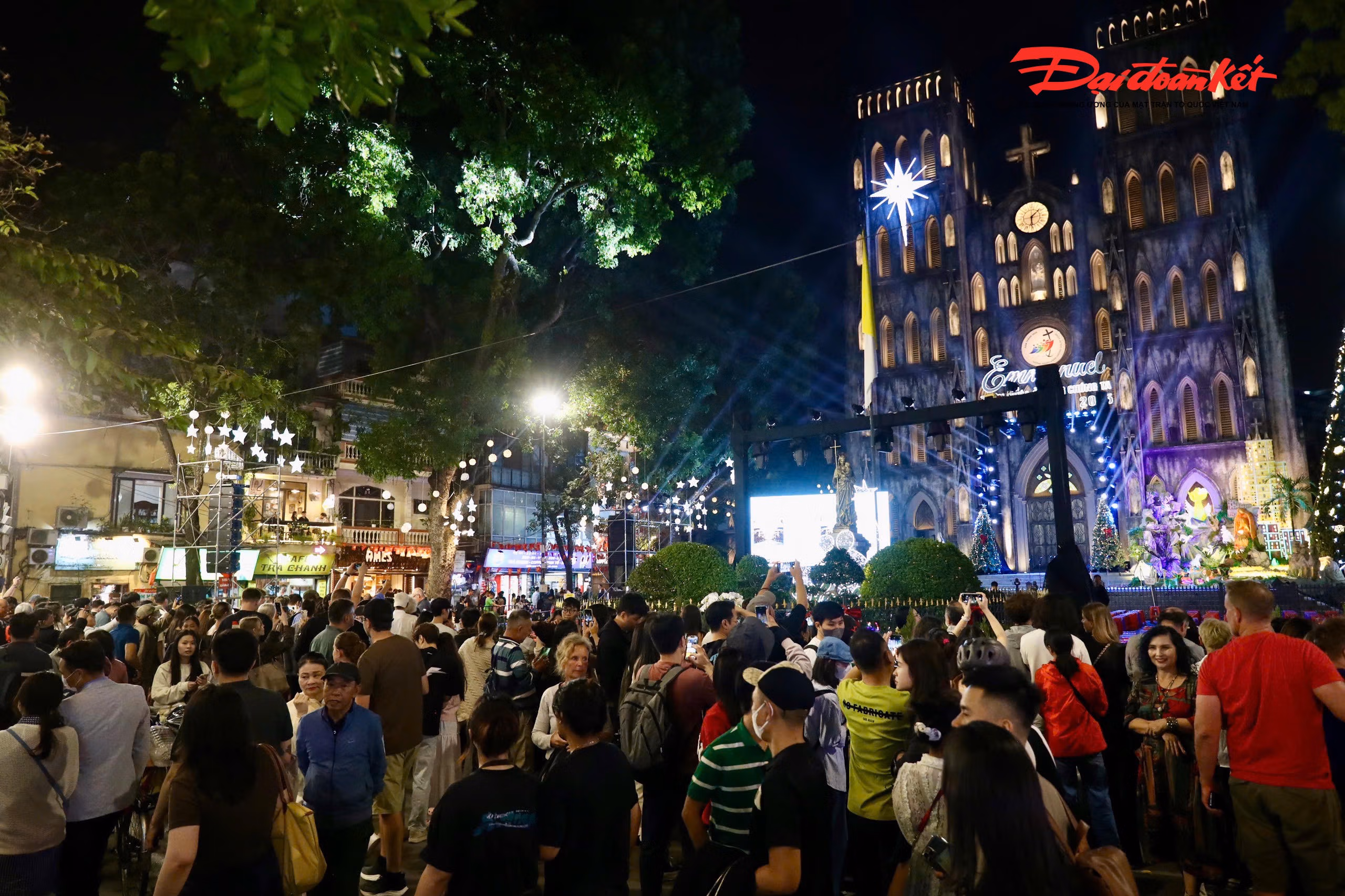 Tối 24/12, khu vực Nhà Thờ lớn Hà Nội trở thành tâm điểm của Thủ đô khi hàng vạn người dân và du khách đổ về đây để hòa mình vào không khí Giáng sinh. Dòng người ken đặc tạo nên khung cảnh nhộn nhịp hiếm thấy giữa lòng phố cổ.
