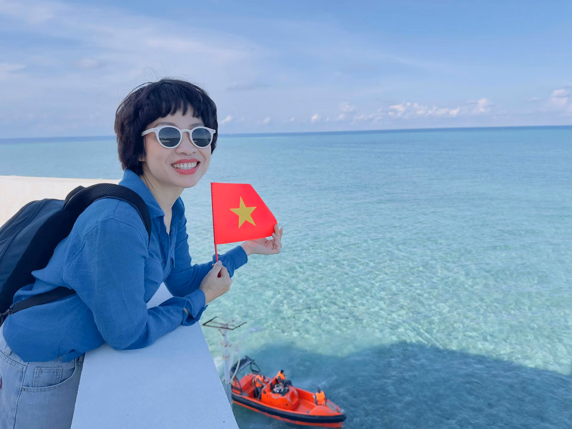 - Trường Sa với cá nhân tôi và cũng như nhiều đồng nghiệp khác, là mảnh đất thiêng liêng của Tổ quốc, mà mỗi lần có cơ hội được ra thăm và làm việc thực sự là một trải nghiệm quý giá. Việc đến các tỉnh thành của Việt Nam trên đất liền, và ngay cả đi ra nước ngoài giờ đây trở nên đơn giản và dễ dàng với rất nhiều người làm báo, nhưng ra Trường Sa thì lại khác. Vậy nên tôi nâng niu, trân trọng và biết ơn những chuyến đi đó. Dù đã đi Trường Sa đến lần thứ ba nhưng trước chuyến đi lần này tôi vẫn náo nức, hồi hộp vô cùng. Tôi chuẩn bị một cuốn sổ thật đẹp để dự định khi đến từng điểm đảo, tôi sẽ xin được đóng dấu vào đó, mang về làm kỷ niệm. Đó sẽ là món quà vô giá với tôi. Và thật hạnh phúc, dự định đó của tôi đã hoàn thành vượt ngoài mong muốn. Tôi không chỉ mang về nhà cuốn sổ mà thêm cả một lá cờ đỏ sao vàng, đóng dấu các điểm đảo mà đoàn công tác đặt chân đến. Ngay khi về nhà tôi đã lồng lá cờ đặc biệt này vào khung kính và treo trang trọng tại nhà mình.