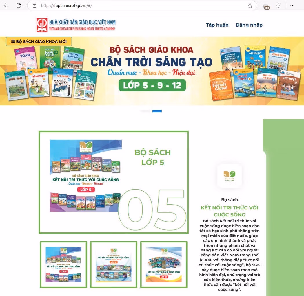 Đến thời điểm hiện tại, toàn bộ hệ thống SGK điện tử của NXBGDVN, bao gồm cả các bộ SGK mới nhất dành cho các lớp 5, 9 và 12 (áp dụng từ năm học 2024 - 2025 theo Chương trình Giáo dục phổ thông 2018), đã được cập nhật đầy đủ, chính xác và phục vụ hoàn toàn miễn phí cho học sinh, giáo viên và đông đảo bạn đọc trên trang taphuan.nxbgd.vn.